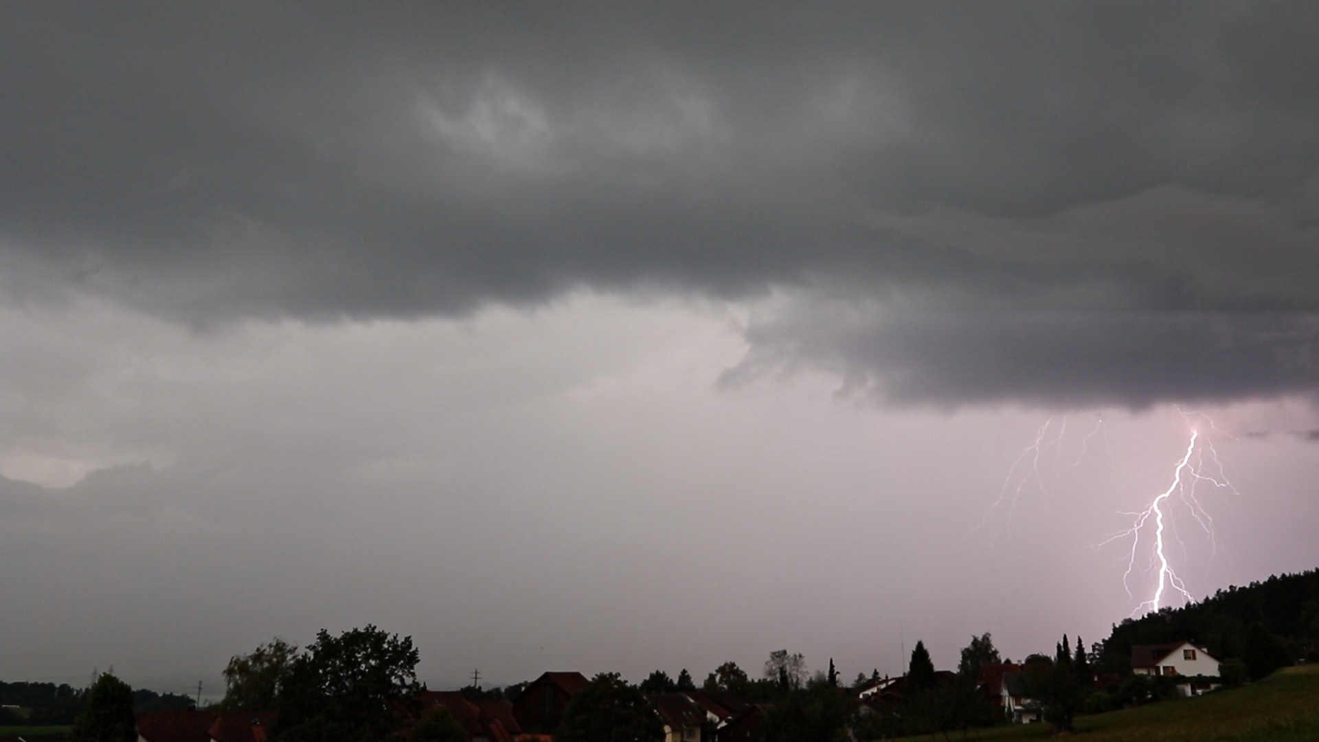 Ziemlich unorganisierter Aufzug hier in Hittnau, keine klare Linie oder Strukturen. Entsprechend nur etwas Wind, mässig starker Regen und nur wenig Blitze. Einziger "Lichtblick" war der Donner, schön satt und langezogen.