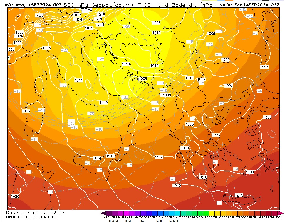 Nach derzeitigem Stand zieht dieses Höhentief bis zum Wochenende zum Balkan, wobei sich über Osteuropa ein Bodentief abspaltet, was zu einer Vb-artigen Konstellation führt. Das bedeutet: Die feuchte Luft wird im Gegenuhrzeigersinn um dieses Druckgebilde herum wieder zurückgeführt. Die Modelle rechnen derzeit über Teilen Österreichs, Tschechiens, Deutschlands (Bayern) und Sloweniens extreme Niederschlagsmengen. In diesen Regionen wird das Thema Hochwasser wohl wieder akut werden.