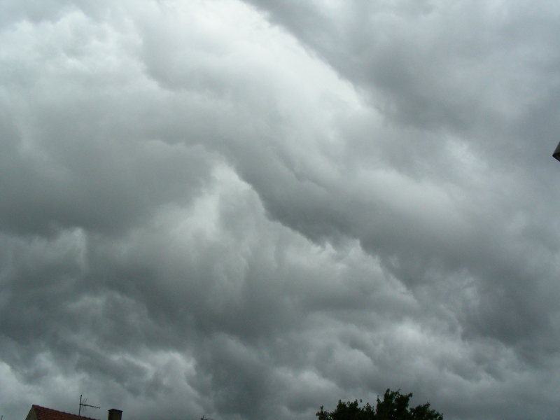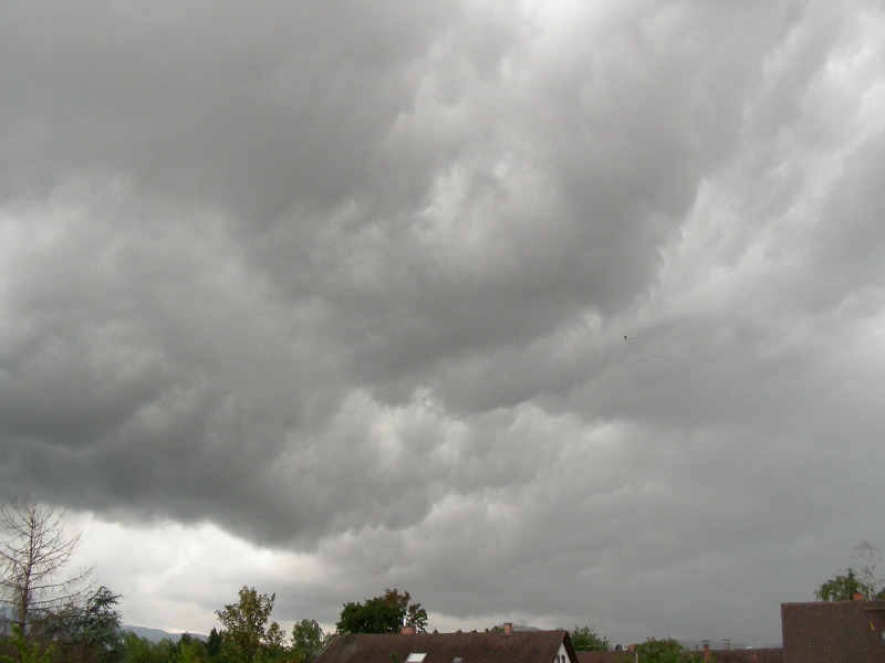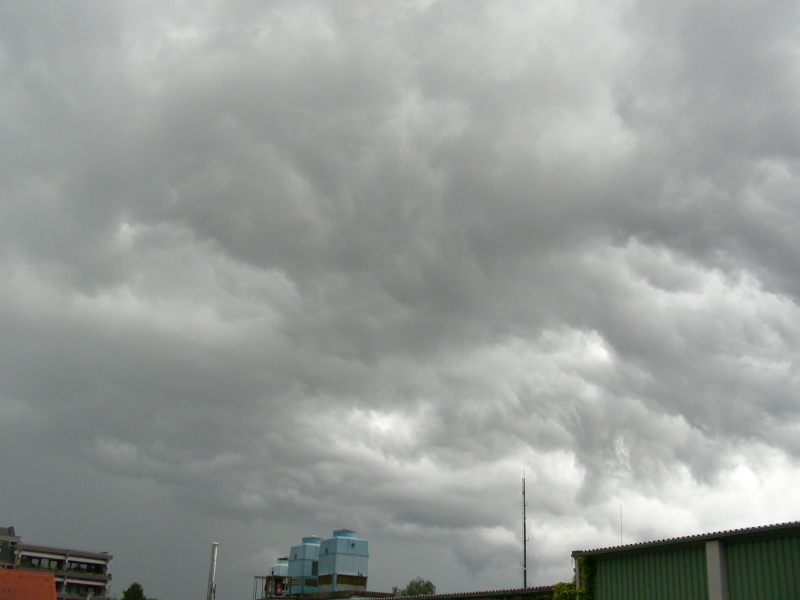 Punkt 16 Uhr ist besagtes Gewitter in Lachen angekommen und hat hübsch geblasen und auch recht abgeregnet, aber gerumpelt hats kein bisschen... wie gesagt, ich war am See, und was mich etwas nachdenklich gestimmt hat, ist, dass kein bisschen Sturmwarnung geleuchtet hat, dabei hats wie gesagt recht ordentlich getan auf dem See. Leid getan hat mir der Fischer, der auf dem See rumdümpelte, wenngleich: Man hats ja schon von weitem kommen sehen... vielleicht wollte der wieder mal etwas Spass haben nach dem Sonnenschein-Juli ;-)