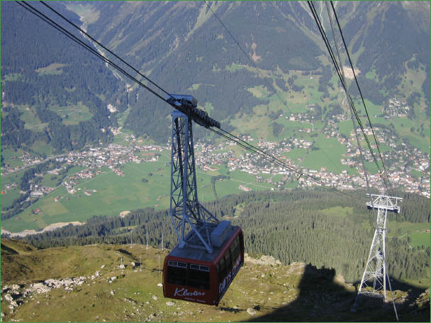 Die Gotschnabahn mit Klosters unten im Tal: