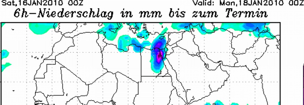 Jedenfalls ist das eigentliche Festland, die Pyramiden usw., sowie das Landesinnere der Sinai-Halbinsel nicht betroffen. Die Gefahrenzone beschränkt sich auf den Küstenbereich; ich schätze aber, dass der extreme Niederschlag nicht nur alleine aus Regen bestehen wird. Worst-case wäre 10-11cm Hagel mit extremen Schäden!