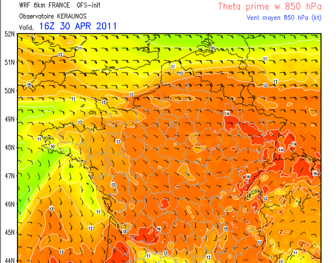 Hallo. Bei Meteocentrale kannst Du ja auf die Regionen klicken. Die NS-/Gewittervorwarnung gilt ab heute 30.04.11, 14:00 Uhr MESZ (d.h. 12z).