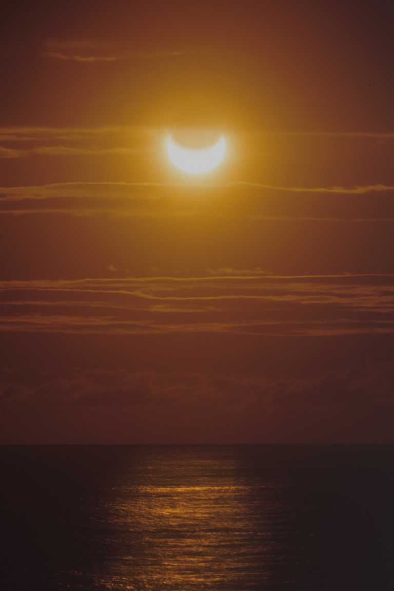 Die Bedingungen zur Dokumentation dieser Sonnenfinsternis waren extrem schwierig. Einerseits war es fast unmöglich einen Standort zu finden, der einen klaren Himmel bot (noch eine Stunde vorher regnete es in Strömen in diesem Gebiet). Zudem verursachte der sehr klare Himmel ein extrem grelles Sonnenlicht, sodass das Ereignis nur durch einen neutralen Grau-Filter hindurch oder mit zusätzlicher Abblendung (Eigenkonstruktion) zu fotografieren war. Ich bin jedoch sehr zufrieden mit dem Resultat.