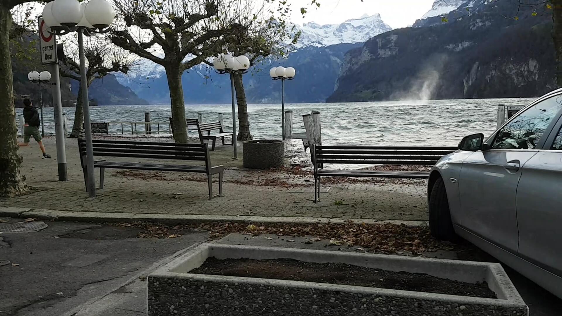 Der Sturm war in Isleten relativ stark (mittel ca. 70km/h Böen ca. bis 100km/h) aber zu regelmässig um Wasserteufel zu bilden.