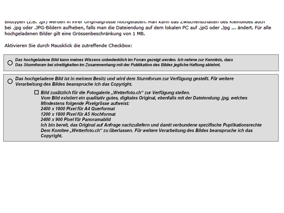 Hier finden Sie alle Bilder, welche mit dem 'Upload' Knopf auf den Sturmforum Server geladen und gepostet wurden. Bitte haben Sie Geduld für den Ladevorgang, zur Zeit sind es ca. 500 Bilder.