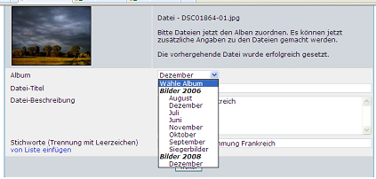 Wählen Sie den Monat und das Jahr für die Liste der Bilder: