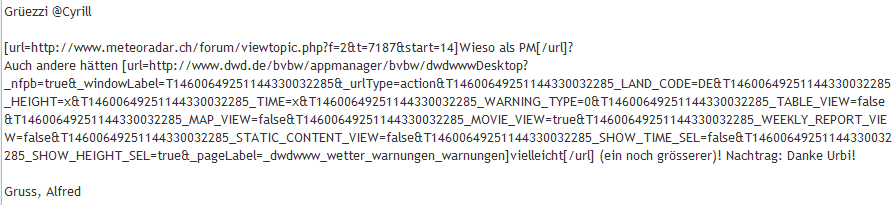 Hier finden Sie alle Bilder, welche mit dem 'Upload' Knopf auf den Sturmforum Server geladen und gepostet wurden. Bitte haben Sie Geduld für den Ladevorgang, zur Zeit sind es ca. 500 Bilder.