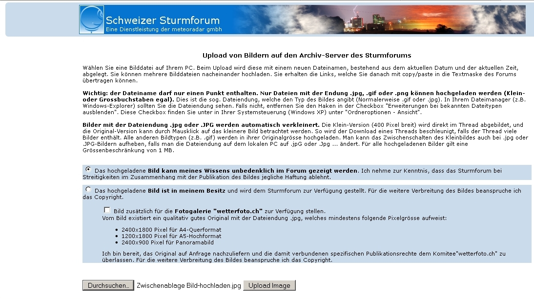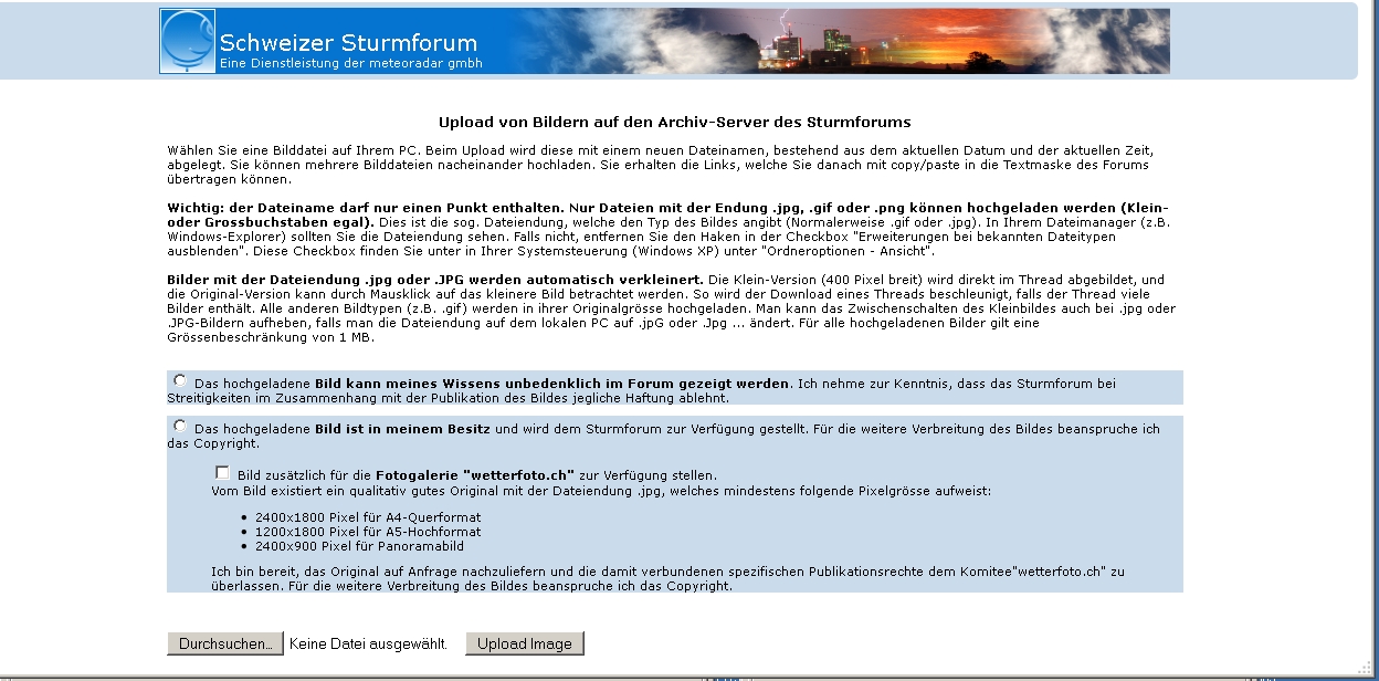 Hier finden Sie alle Bilder, welche mit dem 'Upload' Knopf auf den Sturmforum Server geladen und gepostet wurden. Bitte haben Sie Geduld für den Ladevorgang, zur Zeit sind es ca. 500 Bilder.