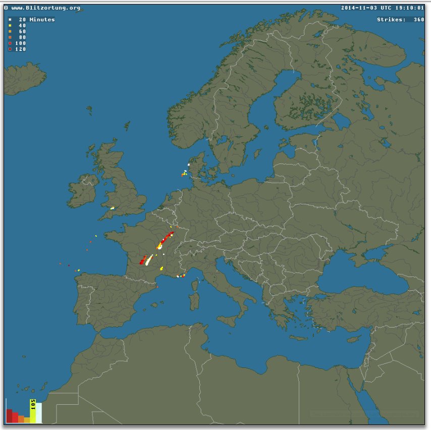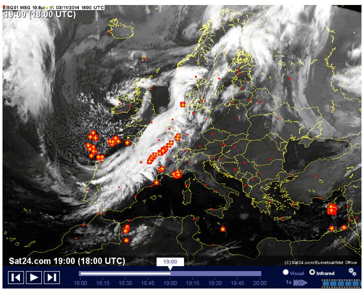 Bereits am Dienstagabend (03.11.14) und in der Nacht auf den Mittwoch (04.11.14) findet ein Abspaltprozess statt, wobei massiv Kaltluft weit nach Süden bis in die nordafrikanische Region vorstösst; und an der Ostflanke des spitzen Troges feuchtwarme Mittelmeerluft an die Alpen herangeführt wird.