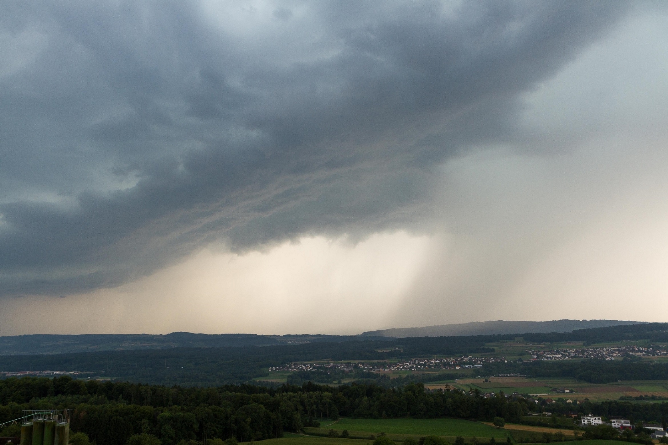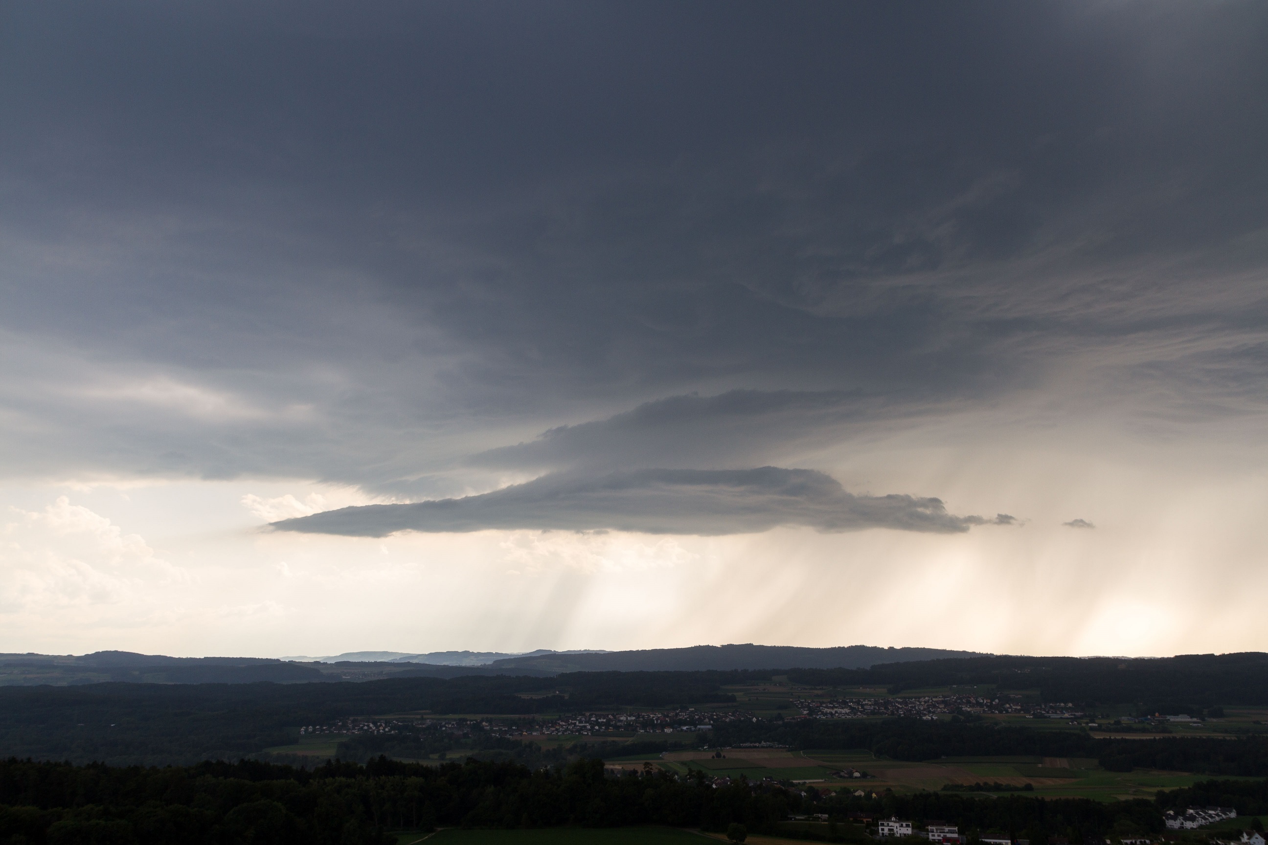 Nachfolgend noch einige Aufnahmen der ersten Gewitterzelle, die durchs Mittelland zog sowie der darauffolgenden zweiten Gewitterlinie. Wir waren primär zum Baden an der Reuss, weshalb wir den Aufzug nicht vollständig mitverfolgen konnten. Machten uns aber gerade noch rechtzeitig auf den Weg, um einige Fotos der sehr fotogenen Wolkenbasis knipsen zu können. Die Zelle schwächte sich allerdings deutlich ab und die zu Beginn tiefe Wolkenbasis hob sich innert wenigen Minuten an.