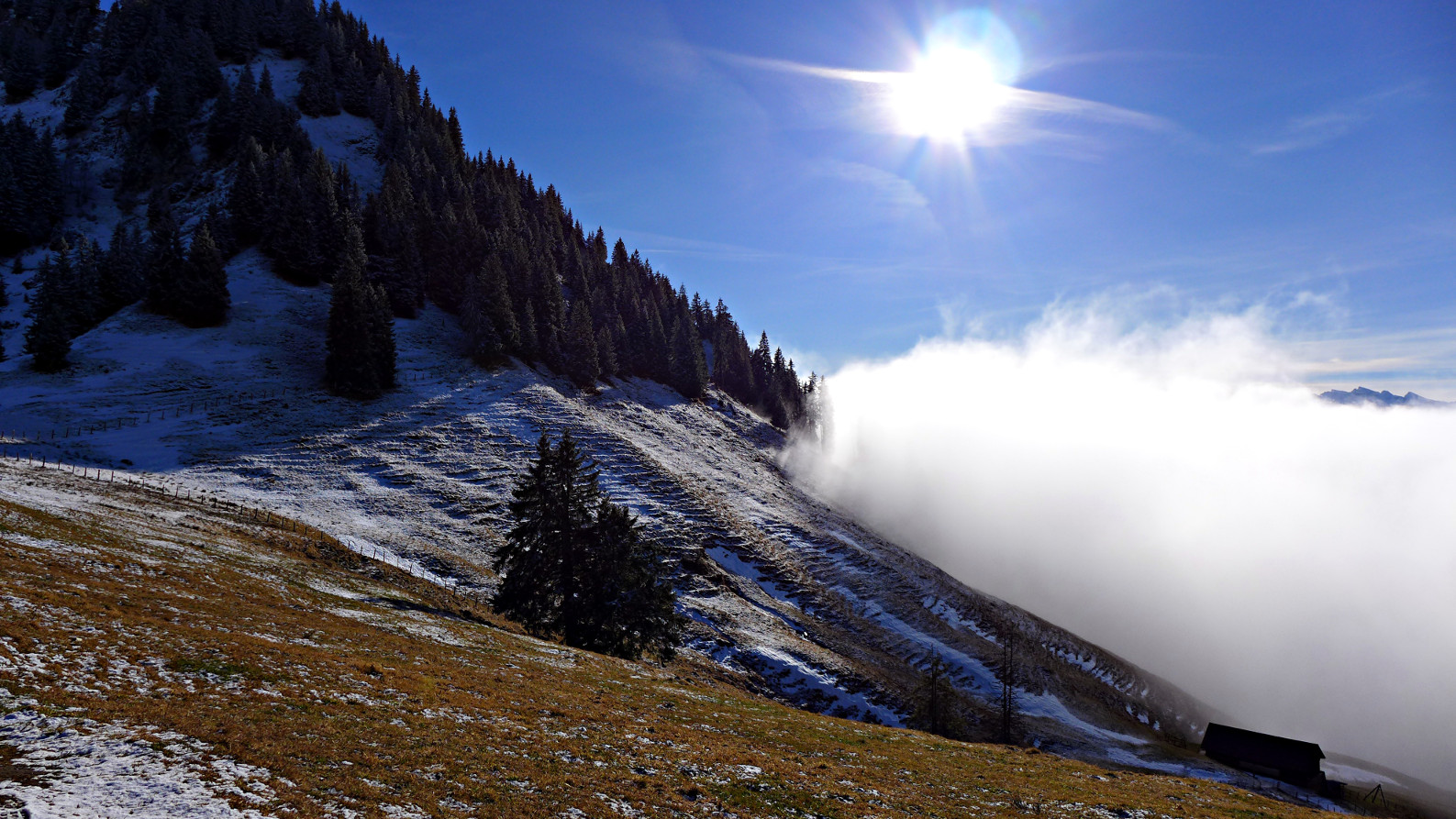 Der Nebel ist gar nicht so langweilig. Ich bin am 19. /20. / 28. Und am 30. Dezember über die Nebelgrenze hochgelaufen oder gefahren, mit dem Ziel ein paar Videos vom Nebelmeer aufzunehmen. Meine Standorte waren etwas über Küssnacht Richtung Seebodenalp, die Kapelle auf Michaelskreuz, Seebodenalp und der Walchwilerberg.