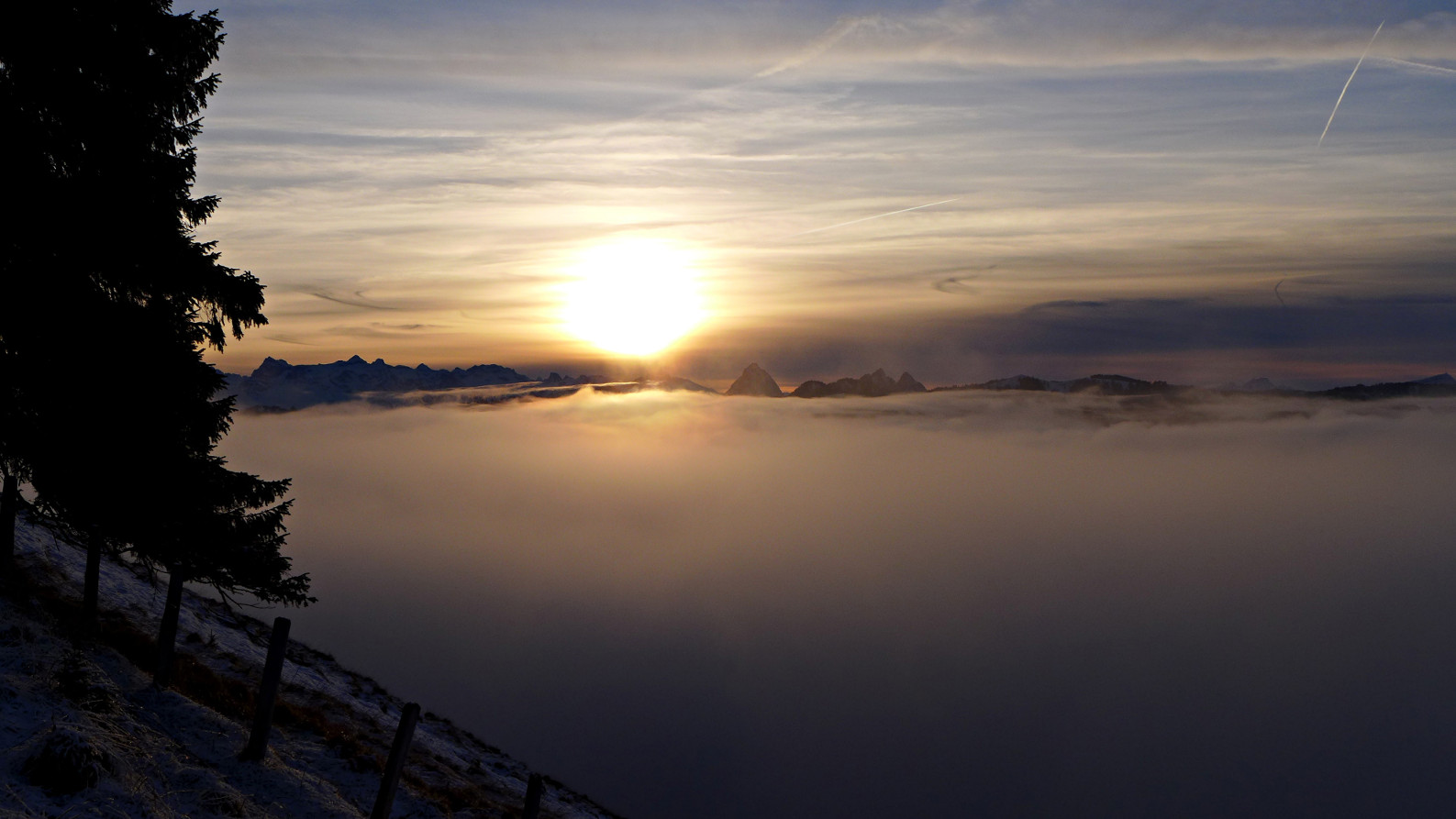 Hier noch ein Bild vom Sonnenuntergang am 30. Dezember auf dem Walchwilerberg.