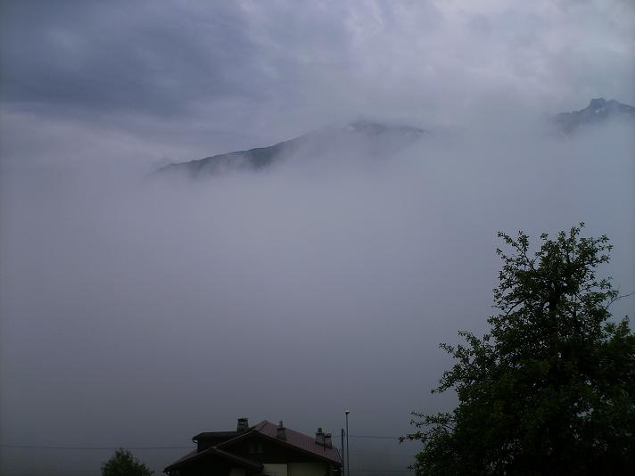 Ich verlagerte mich weiter nach "oben". Die Absenkung unterhalb der Basis nahm langsam aber sicher Konturen an und es entstanden immer wieder Fractusfetzen unter ihr, die dem ganzen noch zusätzliche Dynamik verpassten. An dieser Stelle, ist vor der Basis der Lörracher "Tüllinger Berg" (??) zu sehen. 18.08 Uhr: