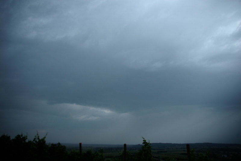 . 20.54 Uhr:Die Dynamik war jedenfalls eindrücklich (zwischen den letzten 4 Bildern liegen keine 5 Minuten) und nur wenig später wurde die Basis von Niederschlag eingehüllt. Wir harrten noch eine gute halbe Stunde mit der Hoffnung auf Blitzbilder aus, da es an den Vogesen hin und wieder blitzte. Es blieb aber beim "hin und wieder" und wir beendeten unser Chasing. Insgesamt war es aufgrund der schlechten Sicht und späten Tageszeit etwas weniger als erhofft, letztendlich aber mehr als zwischendurch befürchtet. Interessante Gewitterlagen waren das (und der 23.) am Oberrhein!