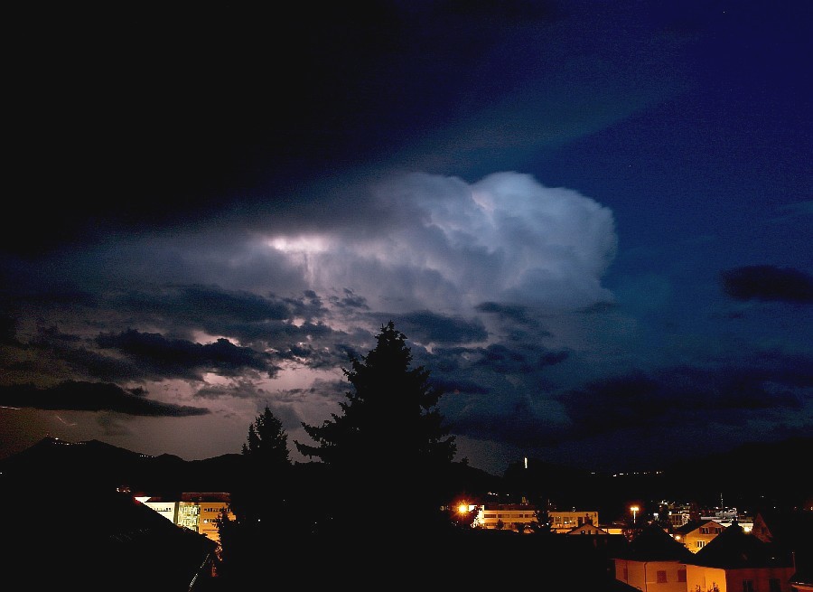 Später am Abend entwickelten sich im Rheingraben noch mehrere kurzlebige und nicht sonderlich blitzaktive Zellen, die zumindest bei mir noch für reichlich Niederschlag sorgten.