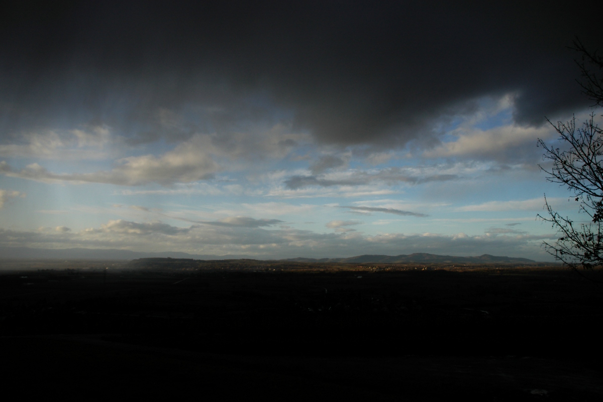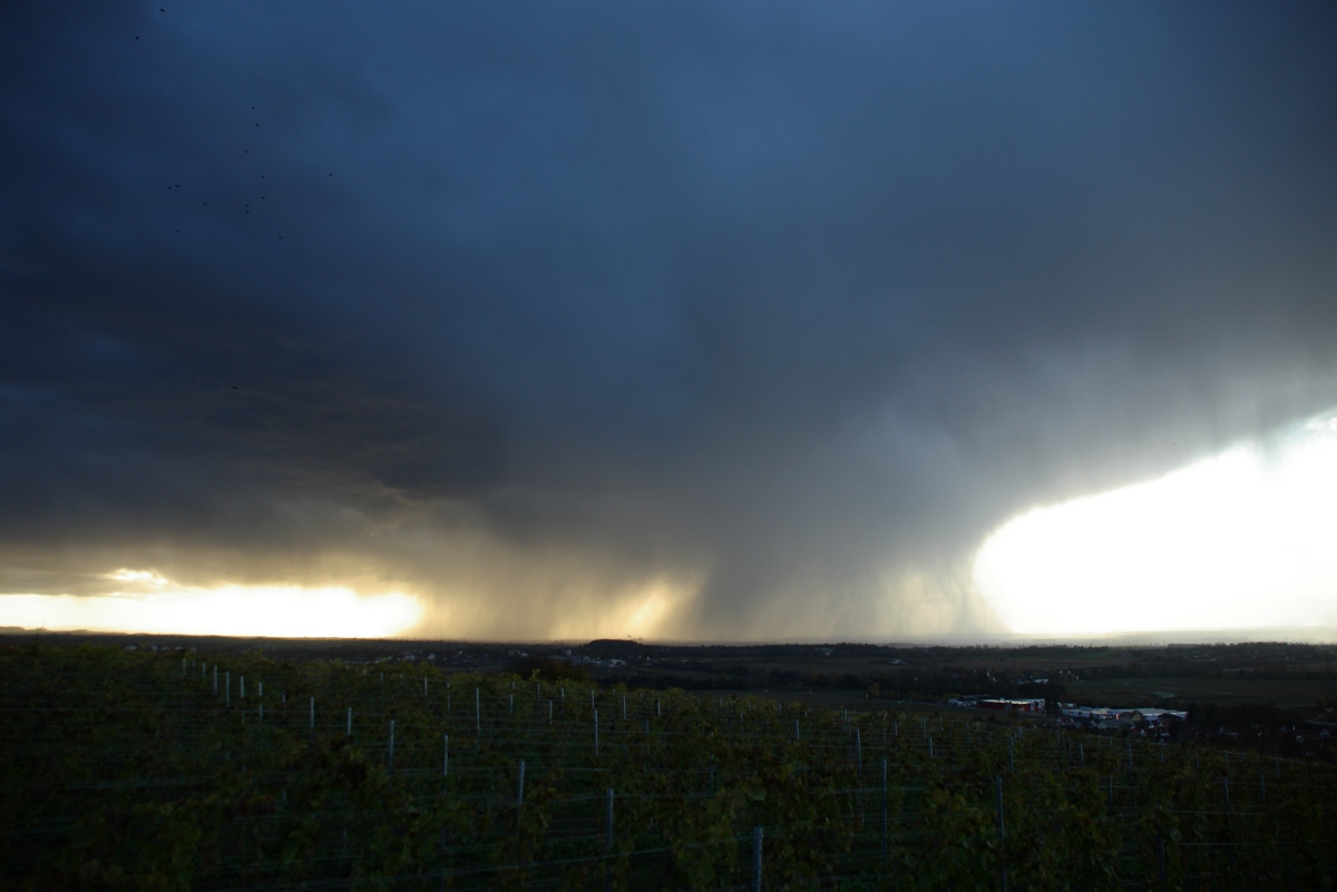 Aufgrund der dichten Fallstreifen war ich zunächst von Graupel ausgegangen. Während Tuniberg und Kaiserstuhl sich sonnten, setzte bei mir kurz darauf kräftiger, grosstropfiger Regen ein. Das war fast schon wieder sommerlich...