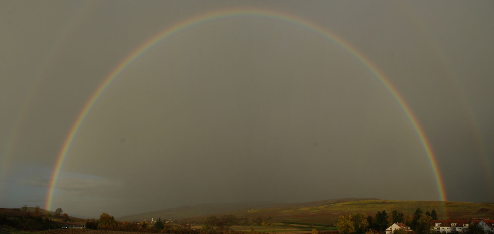 Die Rückseite spendierte mir dann noch einen satten doppelten Regenbogen, kleines Panorama dazu (hatte auch einige Bilderreihen hochkant aufgenommen, doch leider mag MS Ice nichts vernünftiges daraus basteln...):