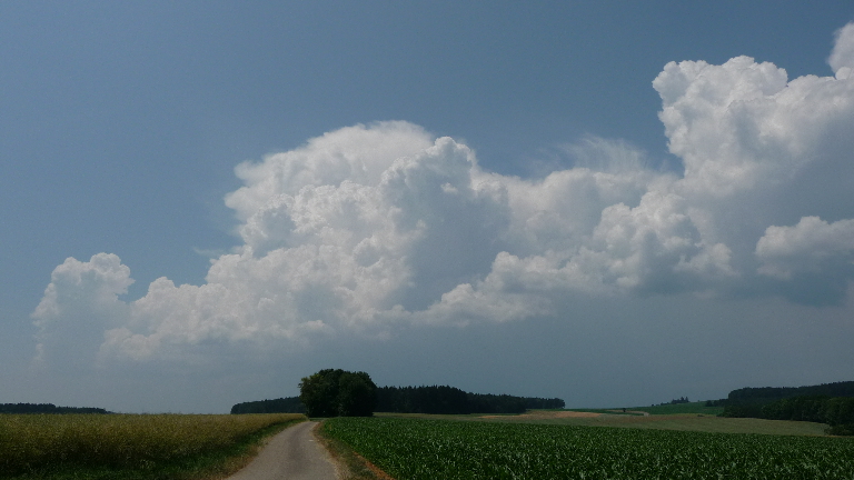 Heute sind die Bedingungen noch besser, weil der Einfluss des Höhenkeils sich Stunde um Stunde suksessive verringert. Der Deckel wird also von West nach Ost schwächer. Ich rechne eigentlich damit, hier heute zumindest in den Einflussbereich eines Cbs zu kommen, wenns mich schon nicht direkt trifft (ist vielleicht auch besser, angesichts des punktuellen Starkregen-Potenzials).