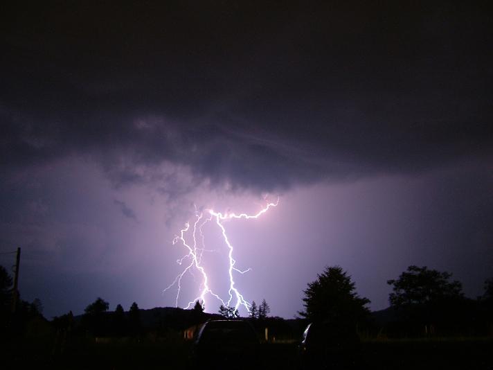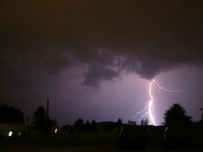 Nachdem ich von meinem Hausberg (Sunnebühl bei Winterthur) das beinahe ortsfeste Gewitter über Zürich-Nord / Kloten / Bülach usw. beobachtete, entdeckte ich auf dem Radar eine wunderschöne Linie, welche den Konvergenzverlauf markierte und fuhr nach Basel. Meine Spürnase führte mich nach Colmar, d.h. einige Kilometer nördlich der Stadt, wo sich leicht westlich von mir ein brutaler cb bildete, der leicht türkis (!) im Mondlicht schimmerte. Just in time, richtiger Ost, richtiger Zeitpunkt wurde diese Zelle nur wenige Kilometer vor mir extrem blitzaktiv (über 95% CG's, Blitzrate max. 1 stk/sek.) War einfach genial. Die spätere Lörracher-Zelle sah ich nur in der Ferne auf dem Rückweg; war zu spät dran.