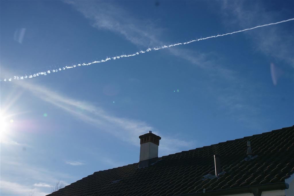 Konnte vorhin ganz spezielle Kondenzstreifen fotografieren (sorry für die Flecken auf dem Sensor^^)