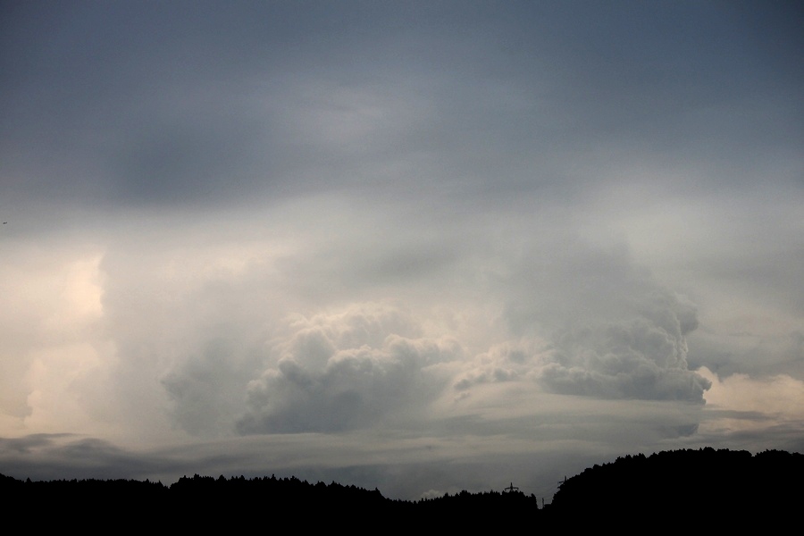Es wurde immer später und die Befürchtung eines Flops wurde immer größer. Der Cu schaffte es dann allerdings gegen 19:50 Uhr doch noch. Das Radar schaute allerdings ähnlich wie der optische Eindruck nicht so gut aus und die Zelle eierte vorerst recht ortsfest und kaum blitzaktiv herum. Zu diesem Zeitpunkt ahnten wir nicht, was sich aus dieser harmlosen Zelle noch entwickeln sollte.