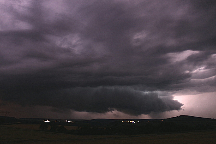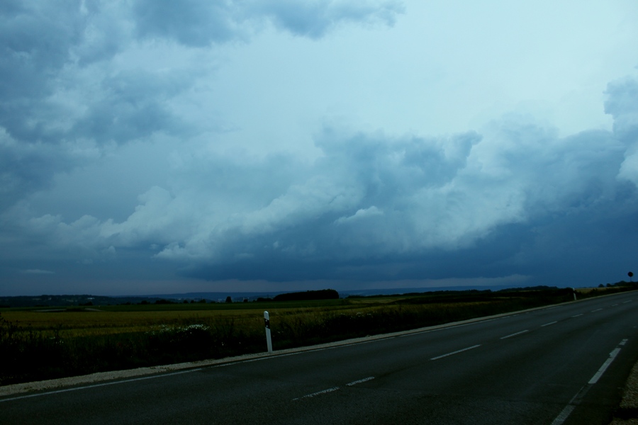Da die anderen Zellen in Oberschwaben etwas zu schwächeln schienen, beschlossen wir das Teil abzufangen. Wir standen nahe Munderkingen und damit ideal. Es zeigte sich nämlich, dass die Zelle nach Überqueren der Alb endlich mal wieder die schöne Donauschiene bediente. Den imposanten Aufzug konnten wir in aller Ruhe beobachten. Die Zelle hatte eine extrem hohe Blitzaktivität (> 60/min.) und sah wirklich sehr bedrohlich aus.