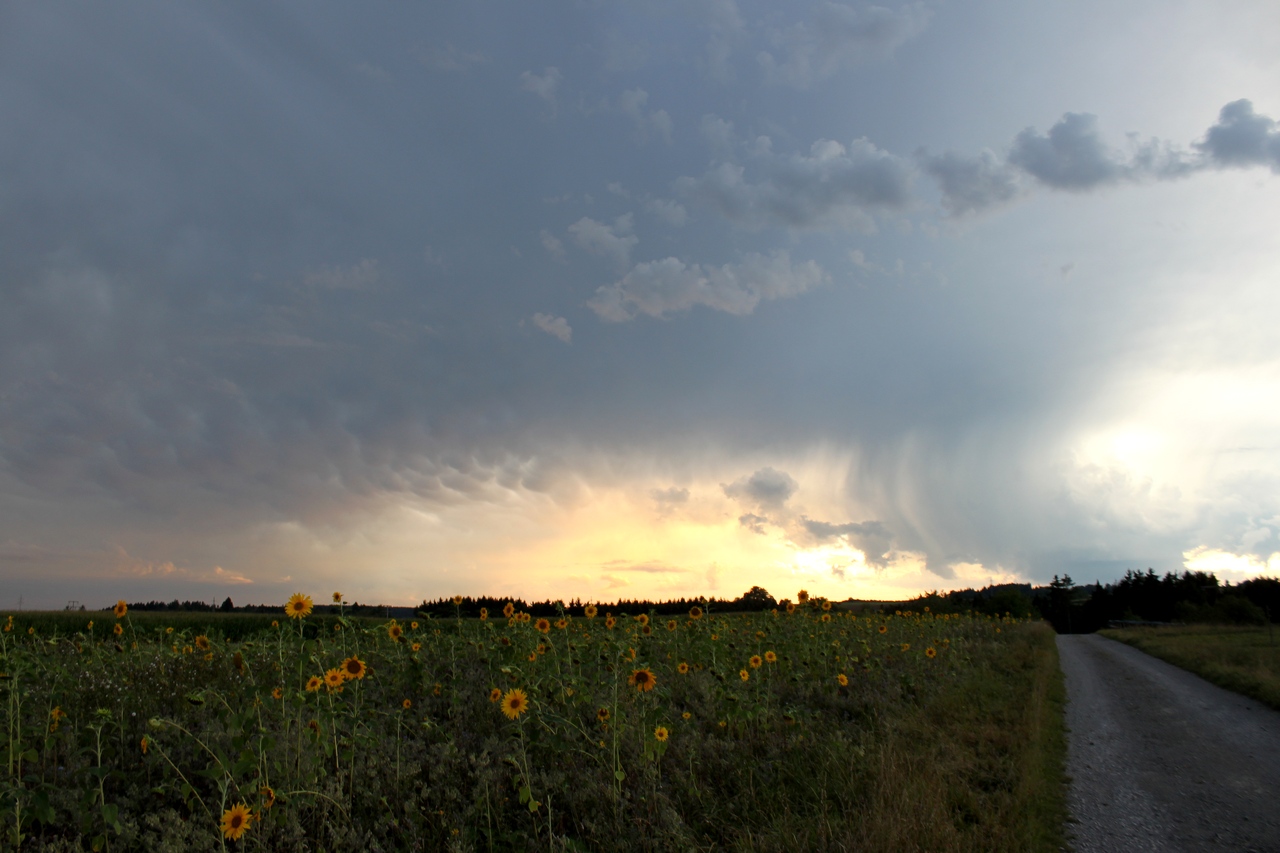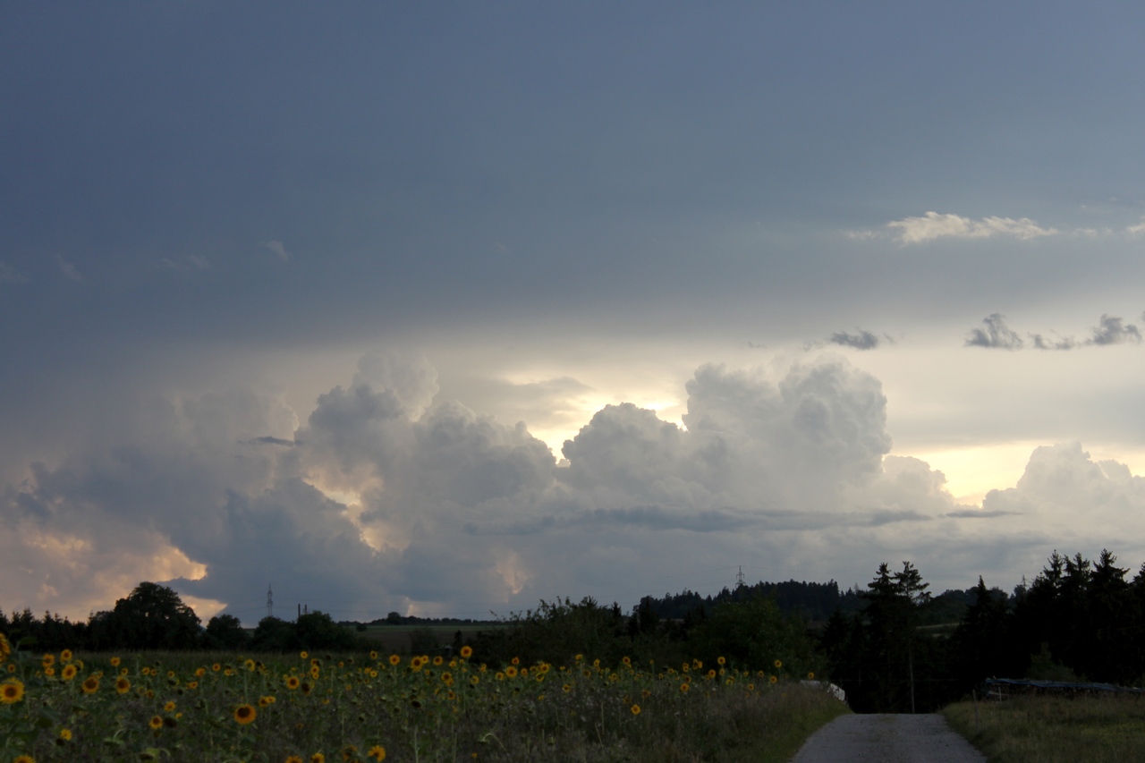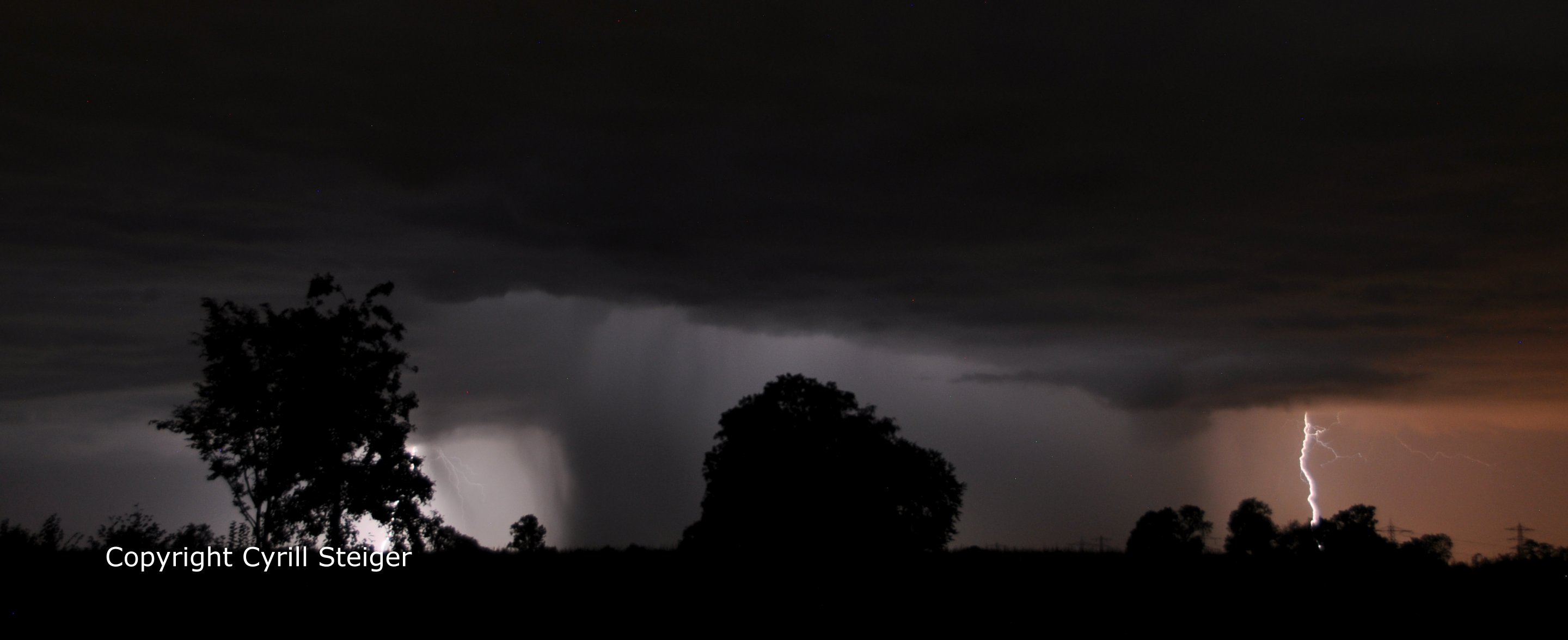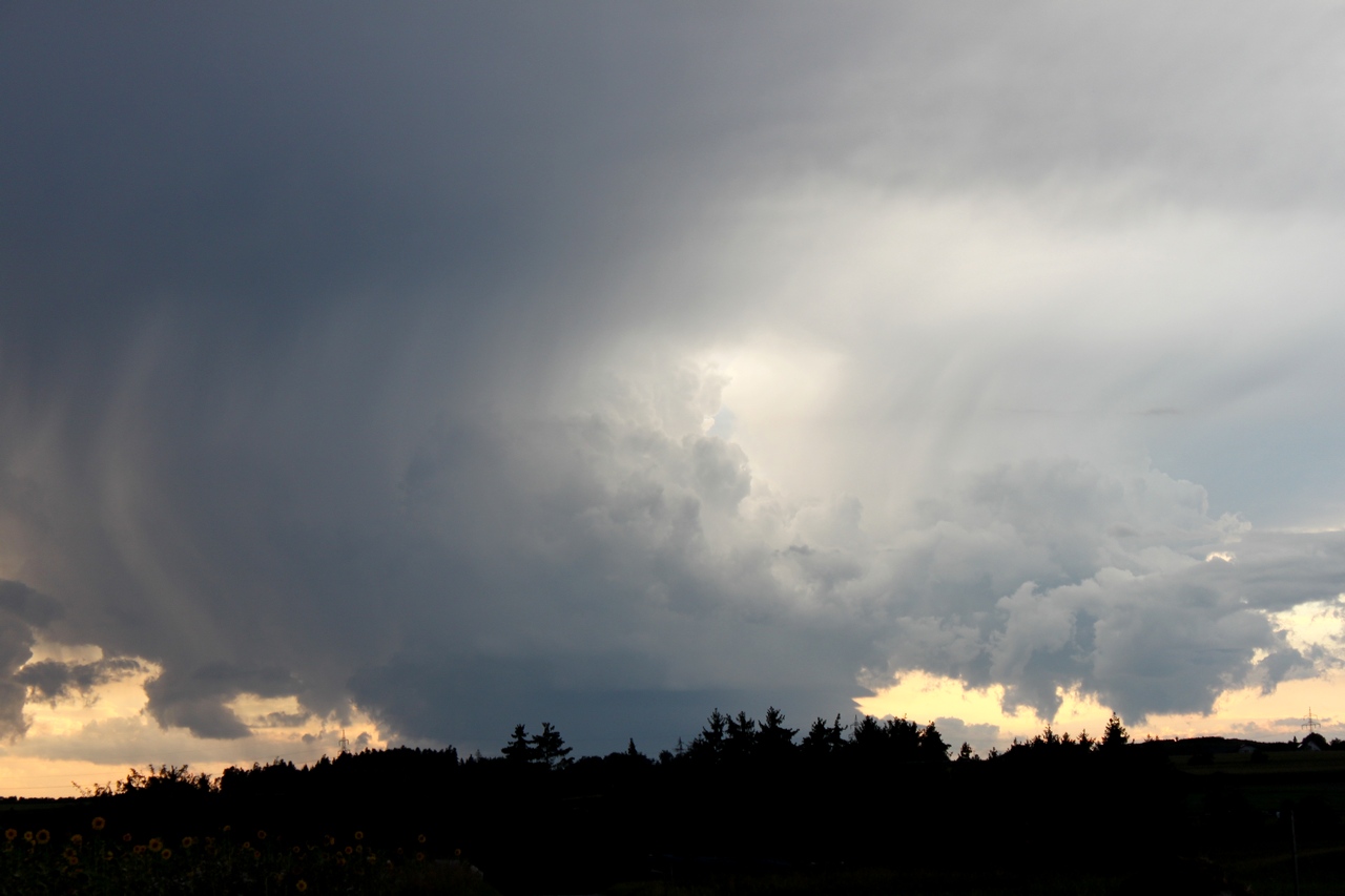 Hier nun ein paar mehr Bilder der gestrigen Zelle(n). Mich erwischte ja der südliche Teil mit einer Meso und heftigem Sturzregen/gemischt mit 1cm Hagel. Es brachte 23mm. Das meiste ist innerhalb nur wenigen Minuten gefallen :shock:
