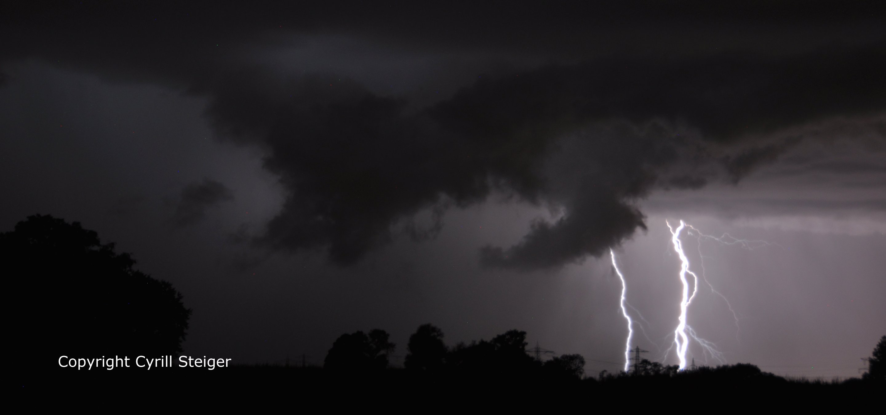 Es klappte und ich war gut in der Zeit, denn um diese Jahreszeit dort einen geeigneten Spotterplatz zu finden ist eine echte Herausforderung, da der Mais in weiten Teilen über 2,5 Meter hoch steht und sonst die Besiedelung ziemlich dicht ist. Aber ich hatte Glück und fand eine freie Stelle zwischen Achern und Bühl, nur gerade drei Minuten bevor die Zelle über Strasbourg sich in meine Richtung bewegte und sich extrem verstärkte.