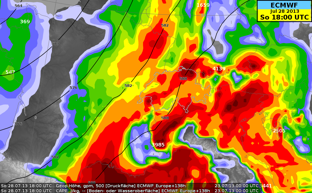 Gemäss GFS (06z-Lauf vom 25.07.2013) erreicht aber die Front die Schweiz erst gg. Mitternacht, mit doch eindeutig modellierten konvektiven Niederschlagssignale bis 03z. Der Föhn bricht zusammen. Es könnte also (wie Marco andeutete) eine nächtliche Lightshow für's Fotoalbum werden. Aber es ist hier noch zu früh, um sich festzulegen, zumal die Front etwas schleifend zu sein scheint (ein Minus-Faktor).