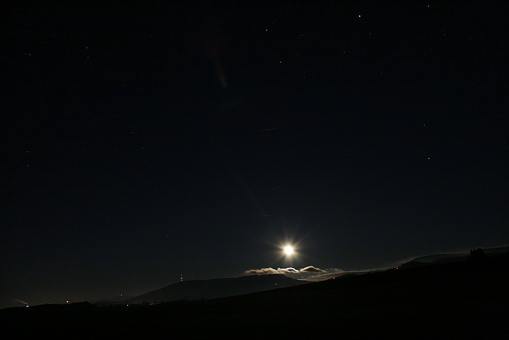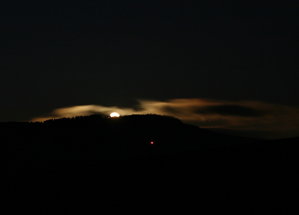 und den Mondaufgang (fast Vollmond) über der Schwäbischen Alb.