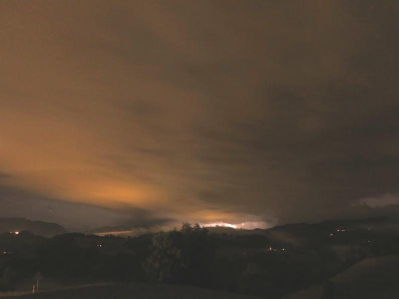 In Neuenkirch-Hellbühl LU verursachte ein Blitz einen Fassadenbrand an einem Bauernhaus. Das Feuer konnte rasch gelöscht werden. In Emmenbrücke wurde ein Baugestell umgeweht. Verletzt wurde niemand.