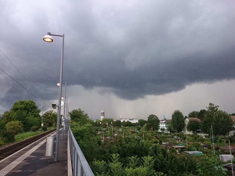 Ich begab mich nach Hause, stellte nach einem Blick auf den Radar fest, dass sich wiederum Zellen vor den Toren Basels befanden und radelte zu einem nahen "Aussichtpunkt" in Riehen BS.