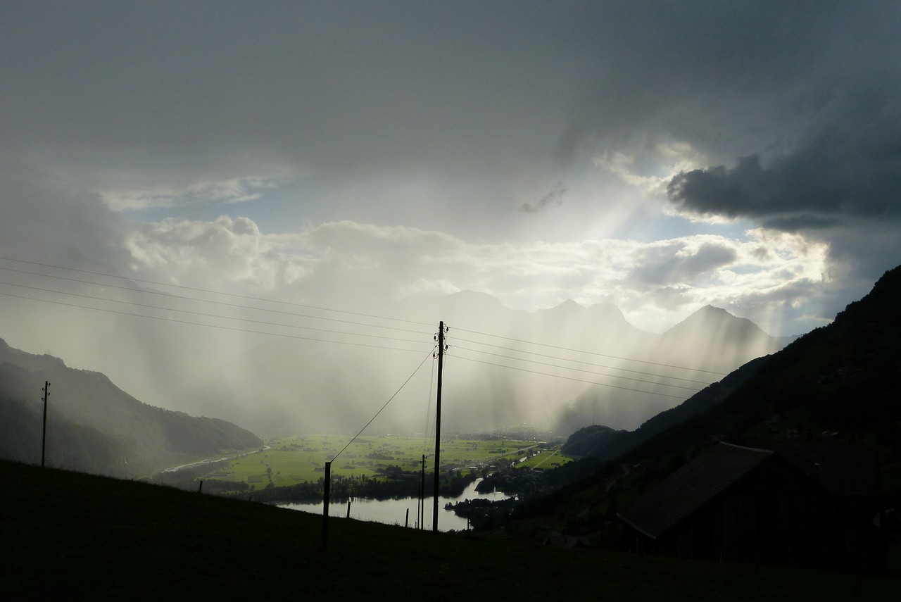 HKL und unbekannte Umstände (Ich konnte weder Labilität noch Hebung in den GFS-Karten finden) führten tagsüber wie im metradar-Warntext angegeben nicht nur zu einigen Regengüssen, sondern sogar zu fotogenen Schauerlinien und einem veritablen Gewitterli.