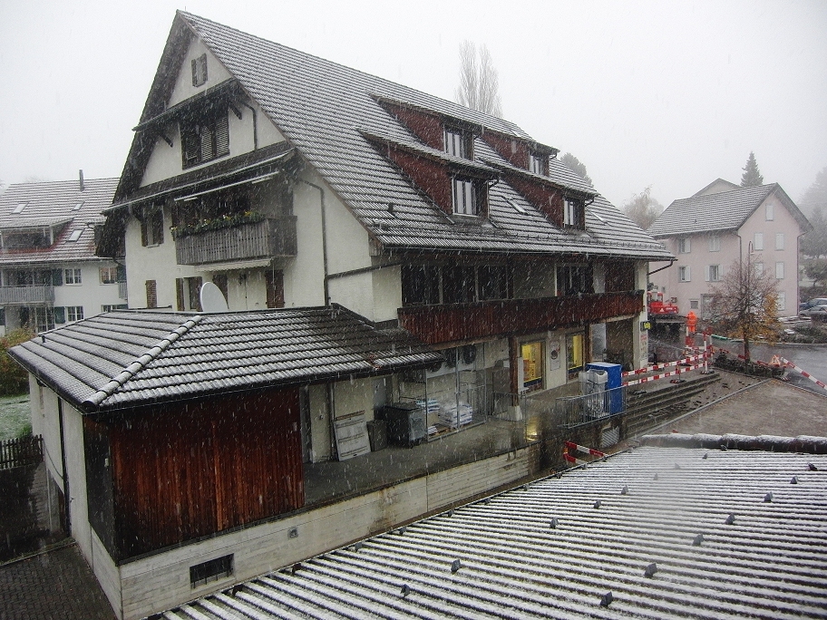 In Arni auf gut 600 müM Schneeregen seit 15 Uhr.