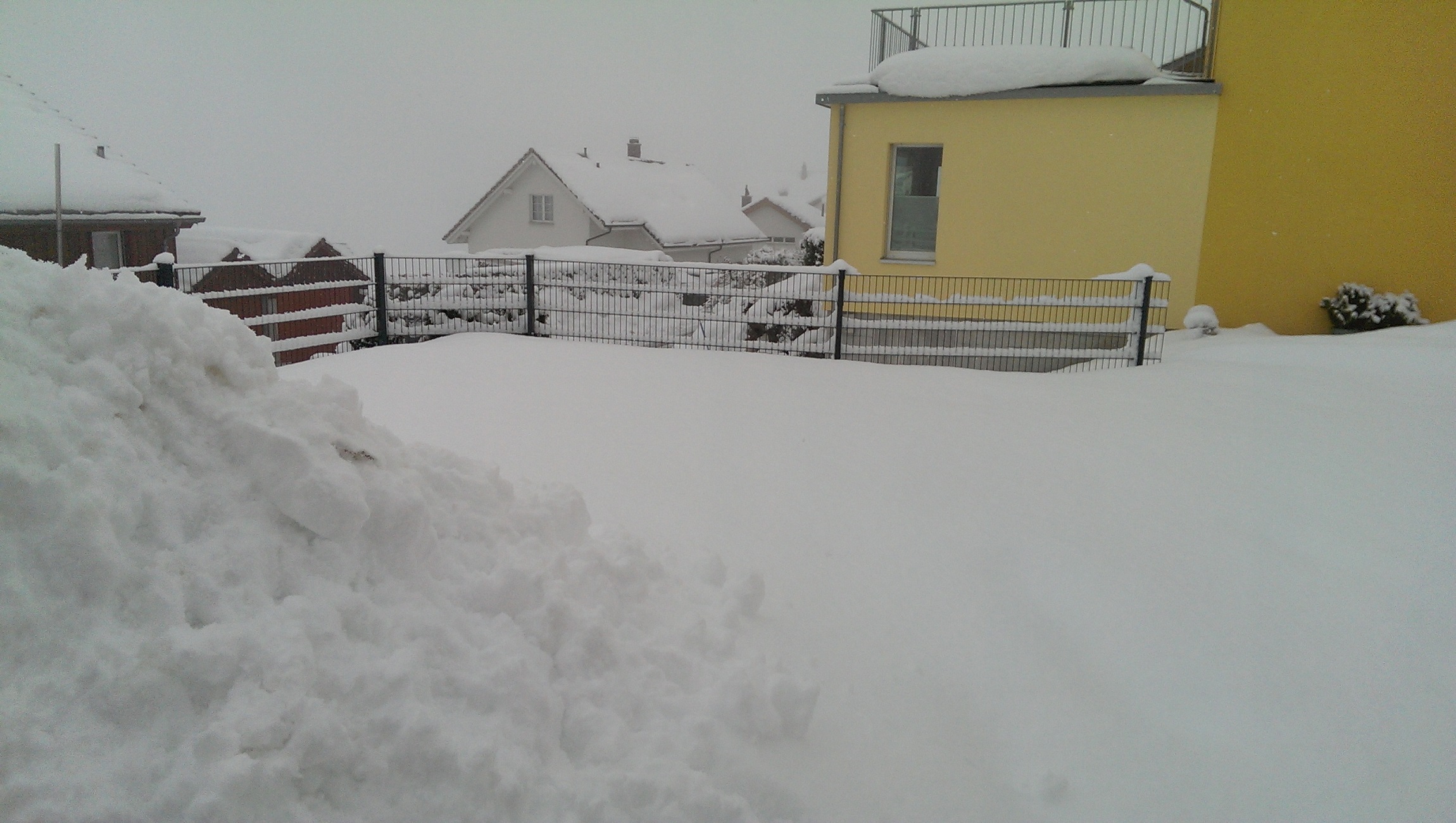 ) schneite (Pflotschte) es erstaunlicherweise auch bis ca. 10.00. Ist eigentlich eher ungewöhnlich das sich hier die Kaltluft besser hält als. im Aargau.