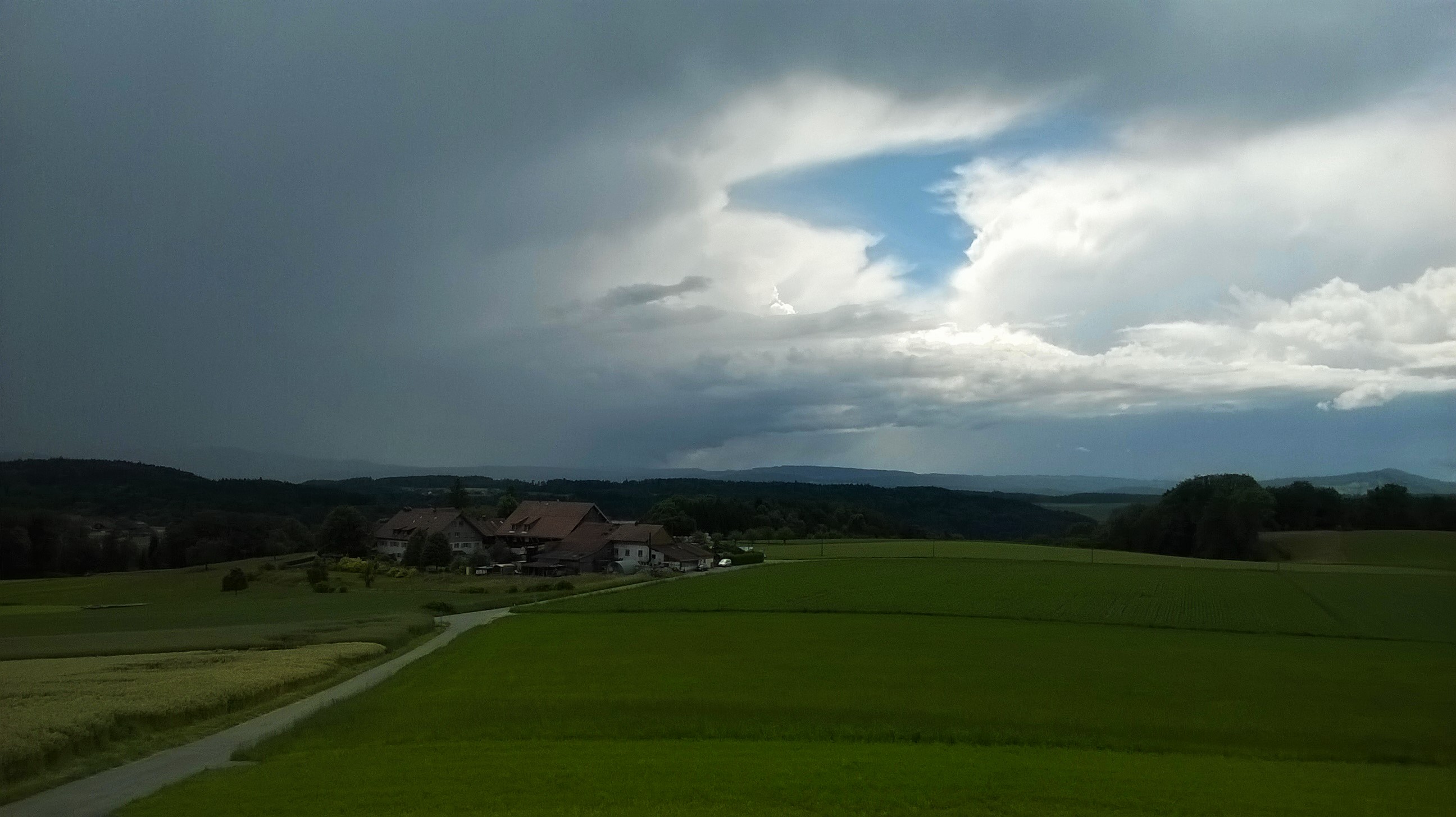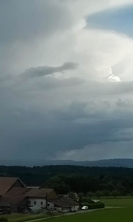 Wollte daher selbst einen Thread eröffnen aber kam bis jetzt leider nicht dazu. Während es am Morgen schon in Juranähe ein paar Gewitter gab, machten wir (Jonas, meine Frau und ich) uns auf den Weg in die Gantrischregion wo wir die erste grössere Hagelzelle abfangen konnten.