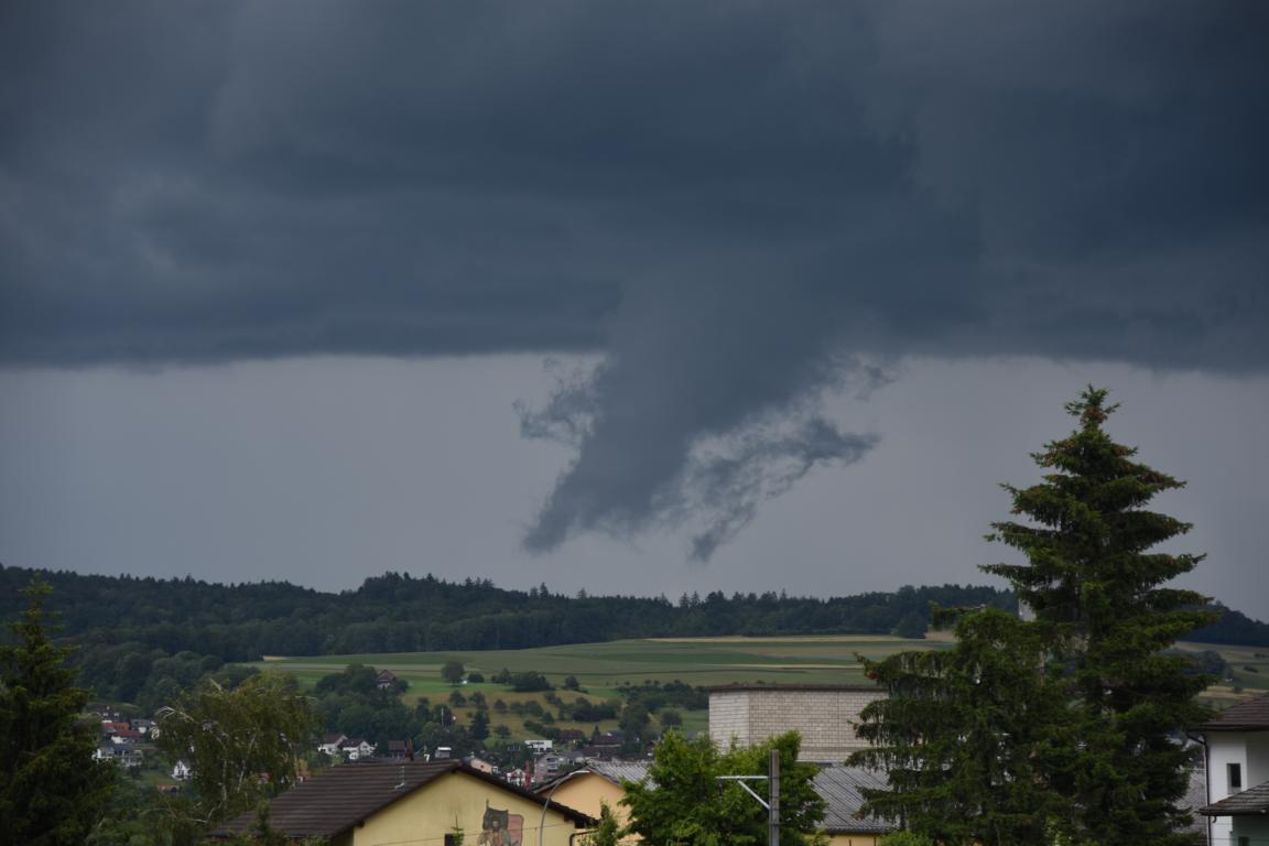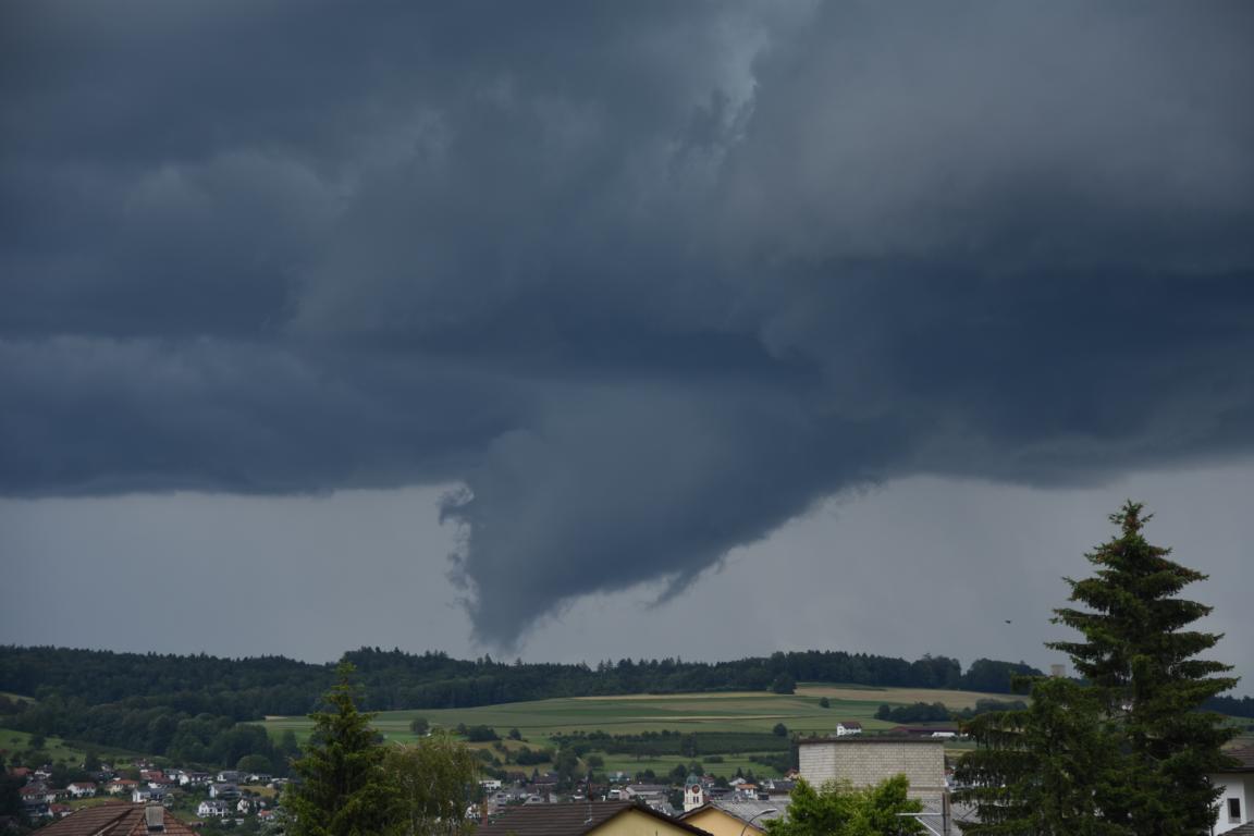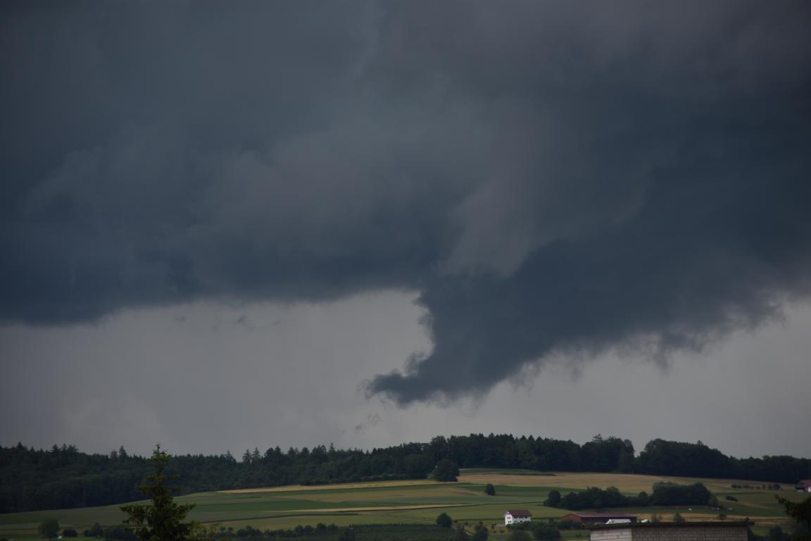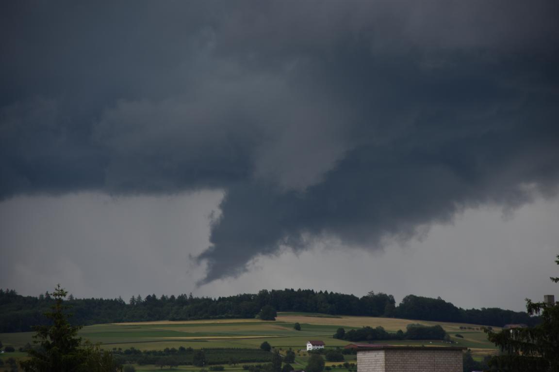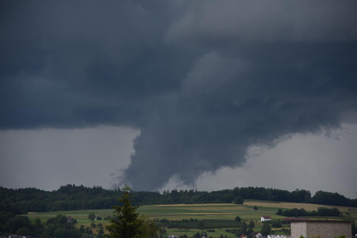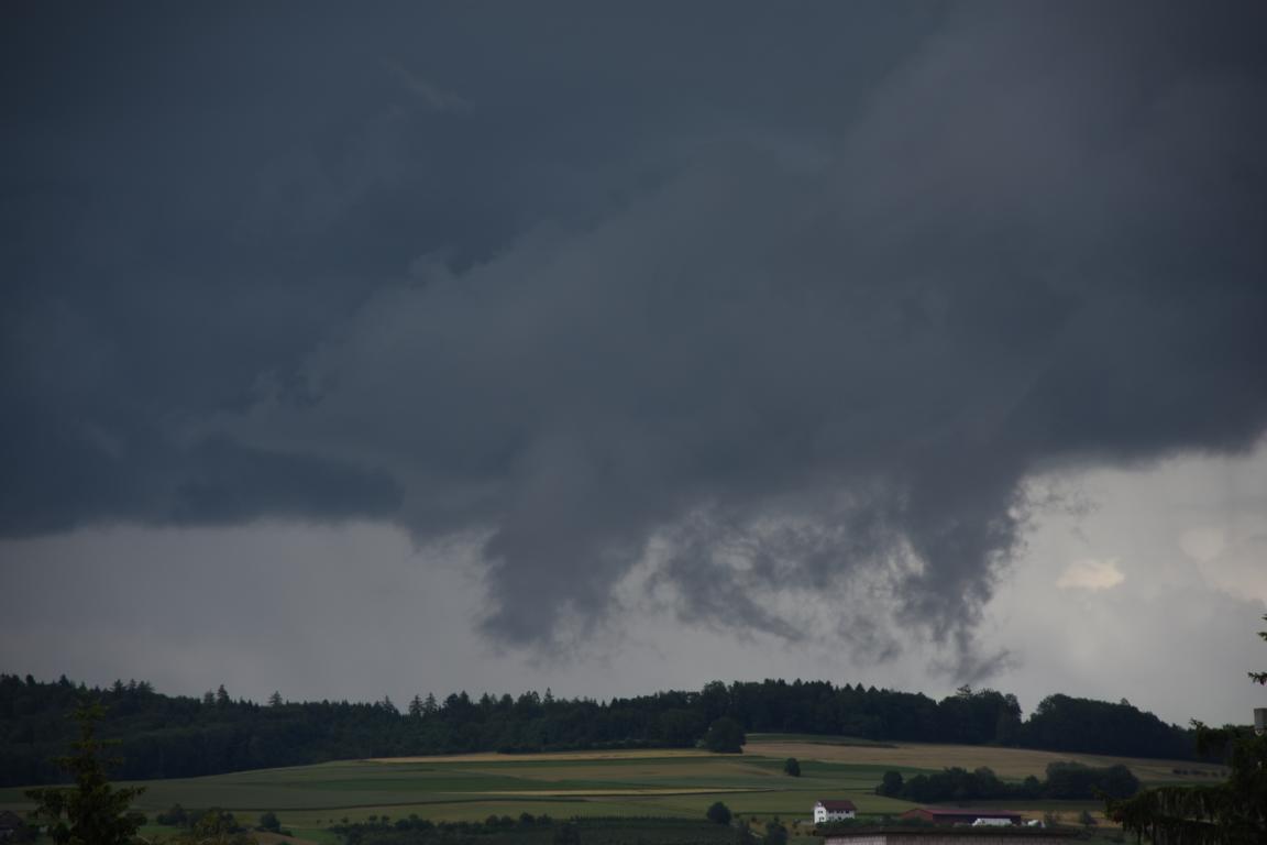 Der gestrige Tag war in der Tat unerwartet aktiv. Als es am Nachmittag plötzlich dunkel wurde, ging ich aus dem Haus , um nachzusehen. Da sah ich eine sehr dunkle Basis einer Gewitterzelle. Ich holte den Fotoapparat und staunte nicht schlecht, als sich gerade ein gut ausgebildeter Funnel aus der Wolke herab senkte. Dieser war etwa von 15.10 h bis 15.25 h zu sehen (Standort Hallwil in Richtung Nordosten).
