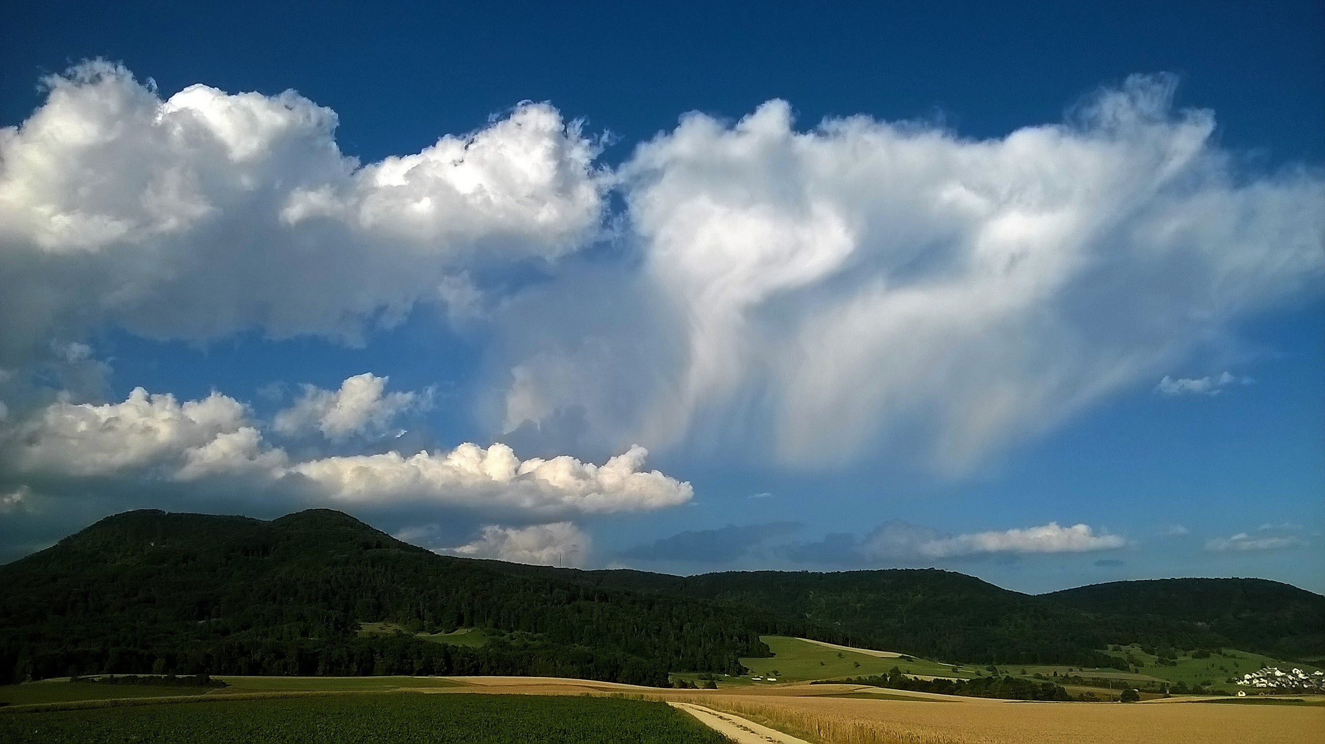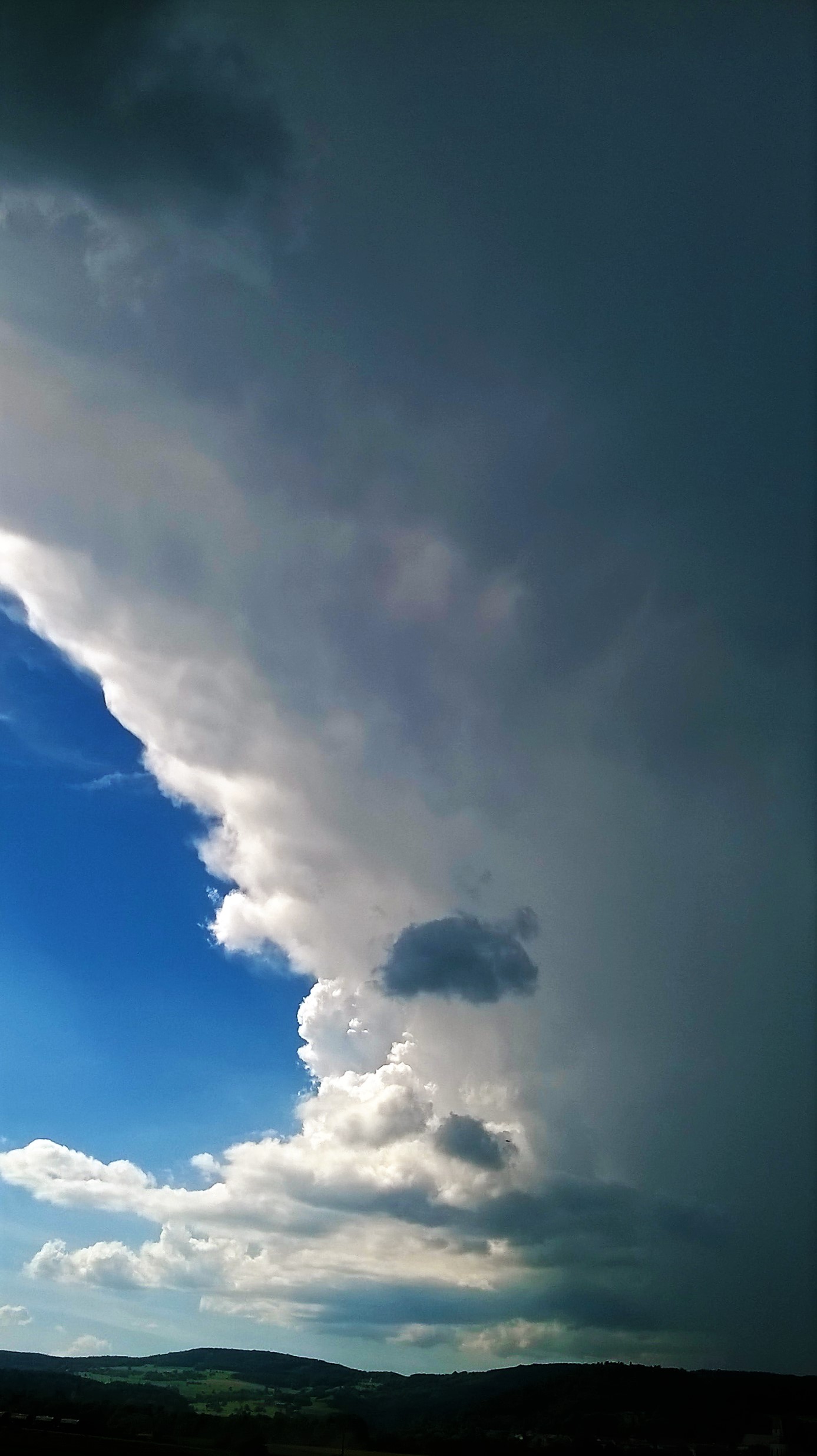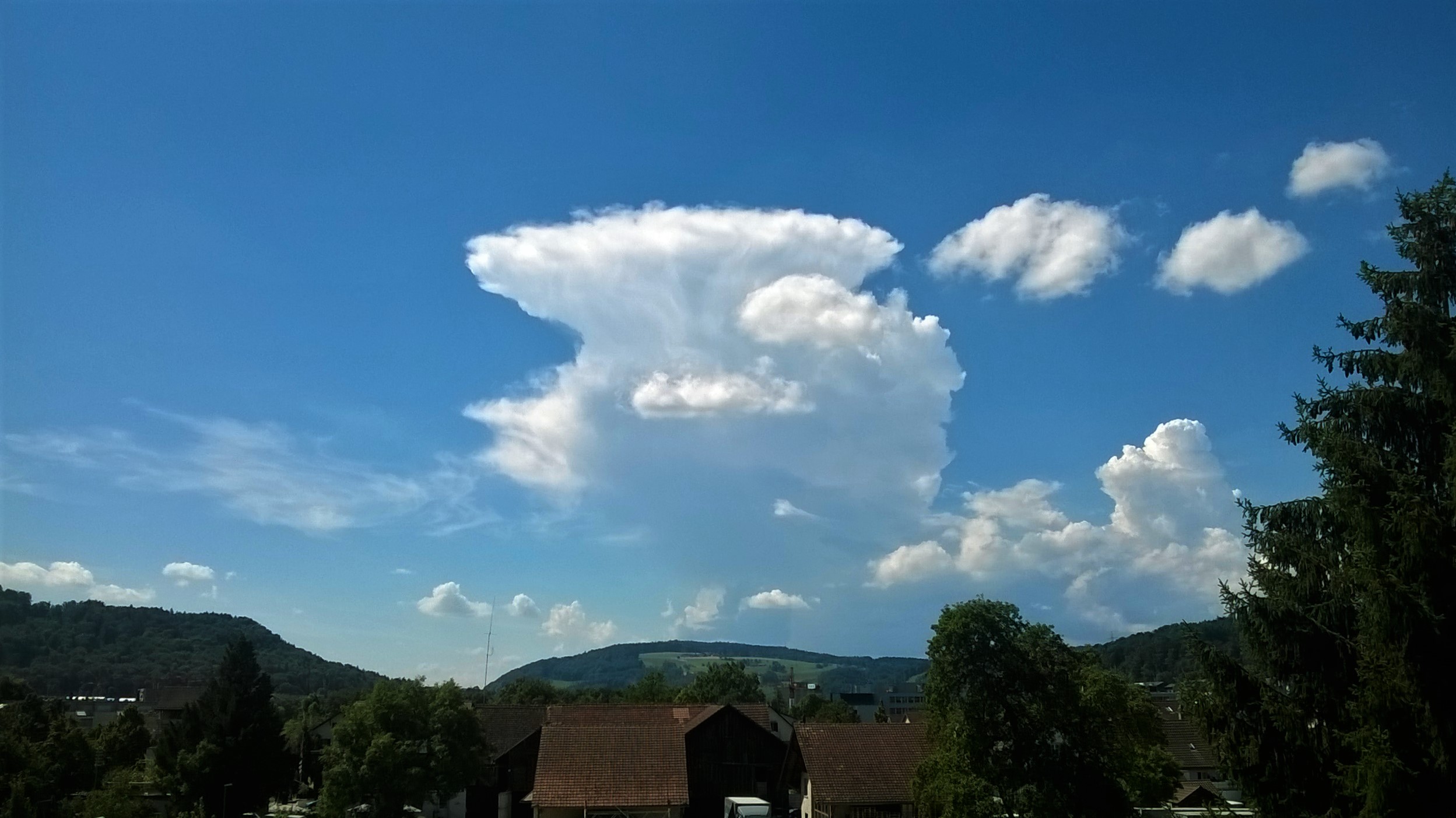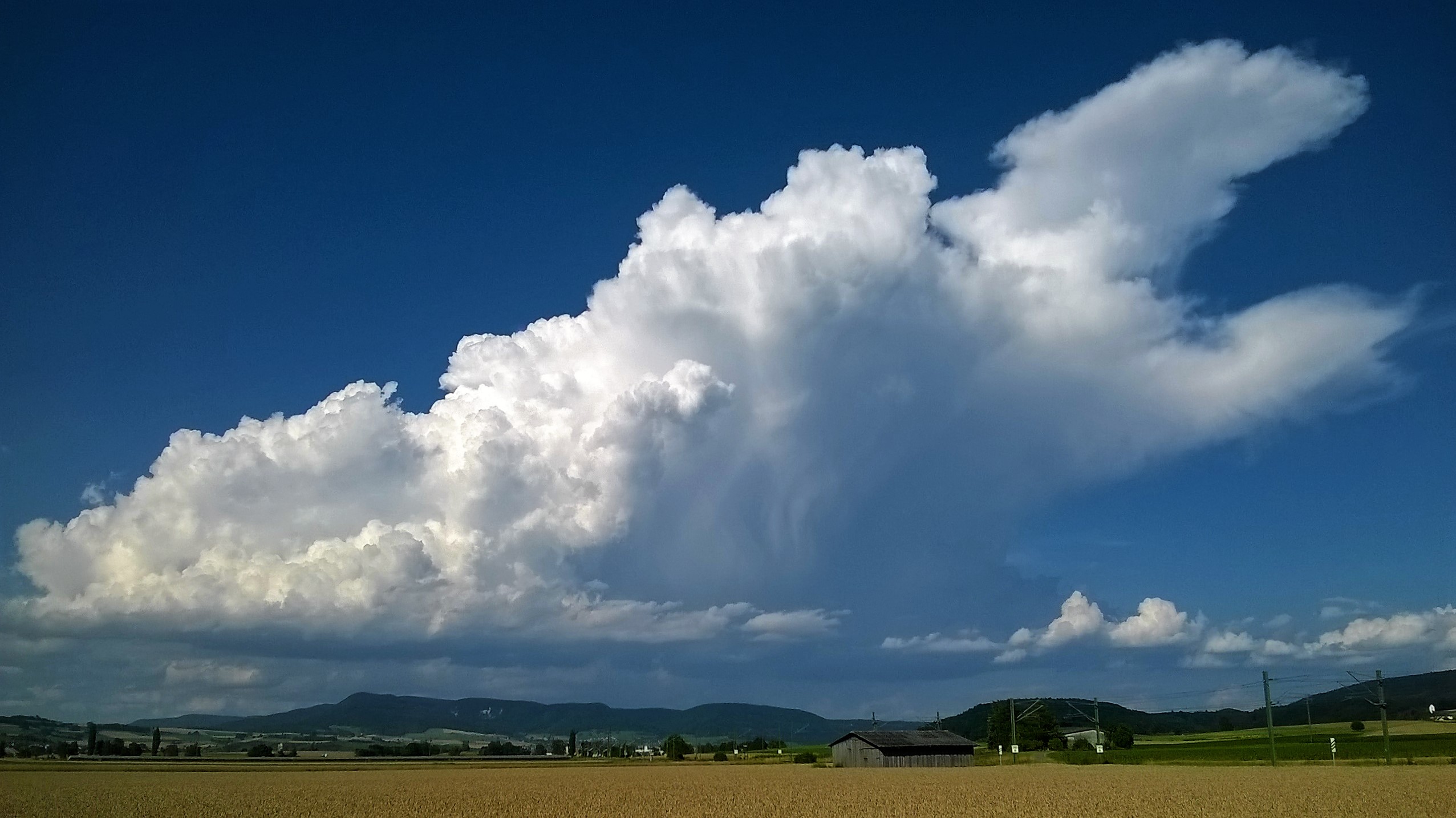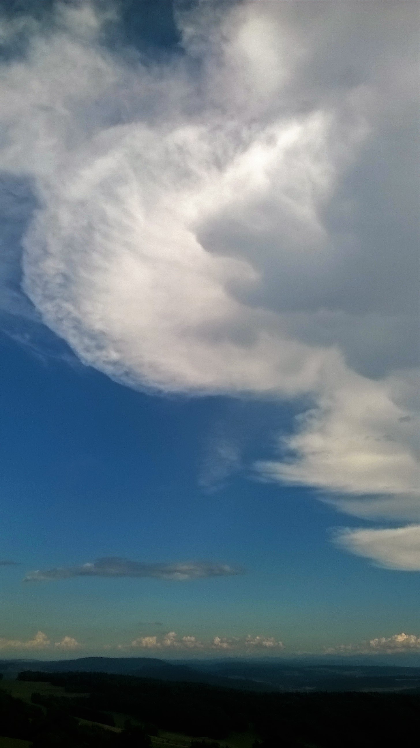 Als ich oben ankam, hatte sie die Basis bereits verloren. Zelle kaputt. Der übrig gebliebene Cb-Schirm schwebte wie eine riesige Qualle in Richtung Südosten in die Schwdiz....