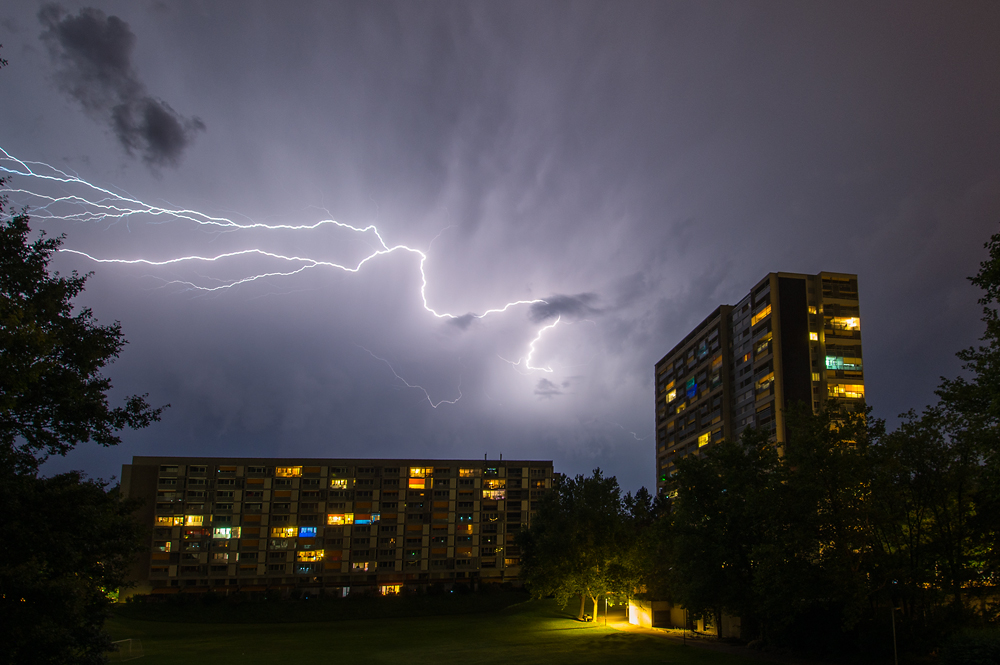 Jetzt gibt es auch noch anständige Einschläge mit gehörigem Donner. Geniales Gewitter, nach knapp 35° am Tag!