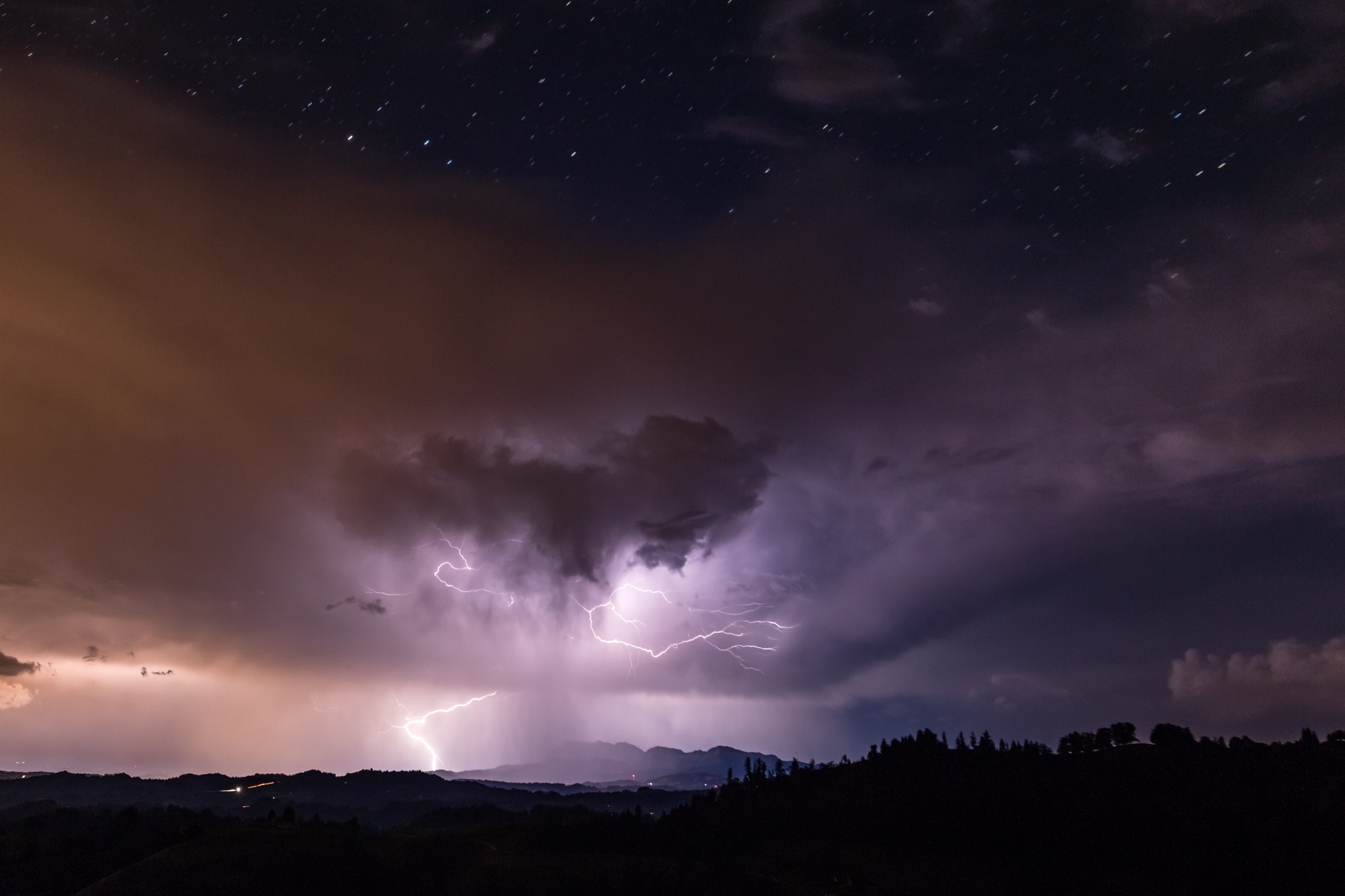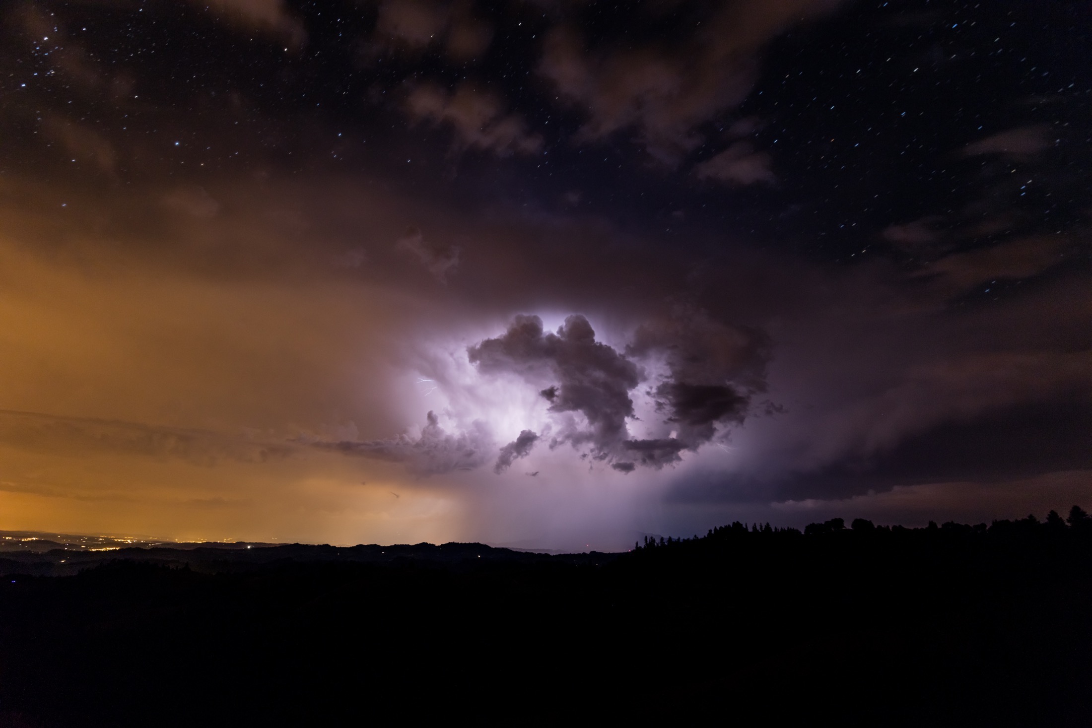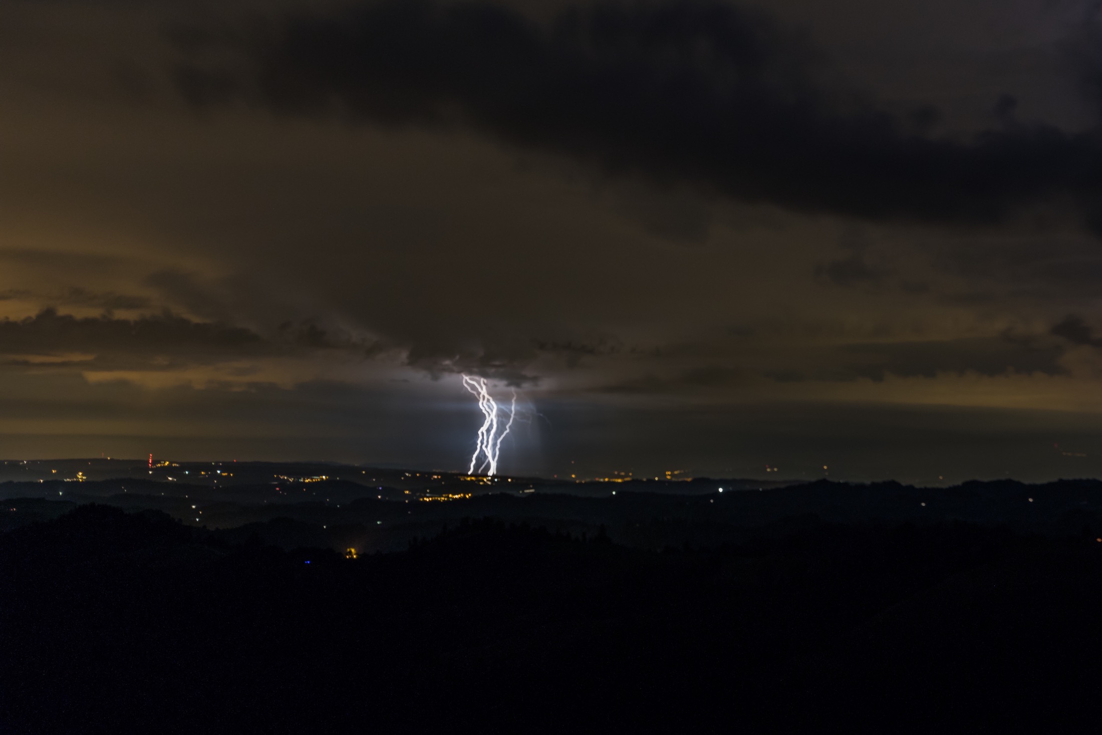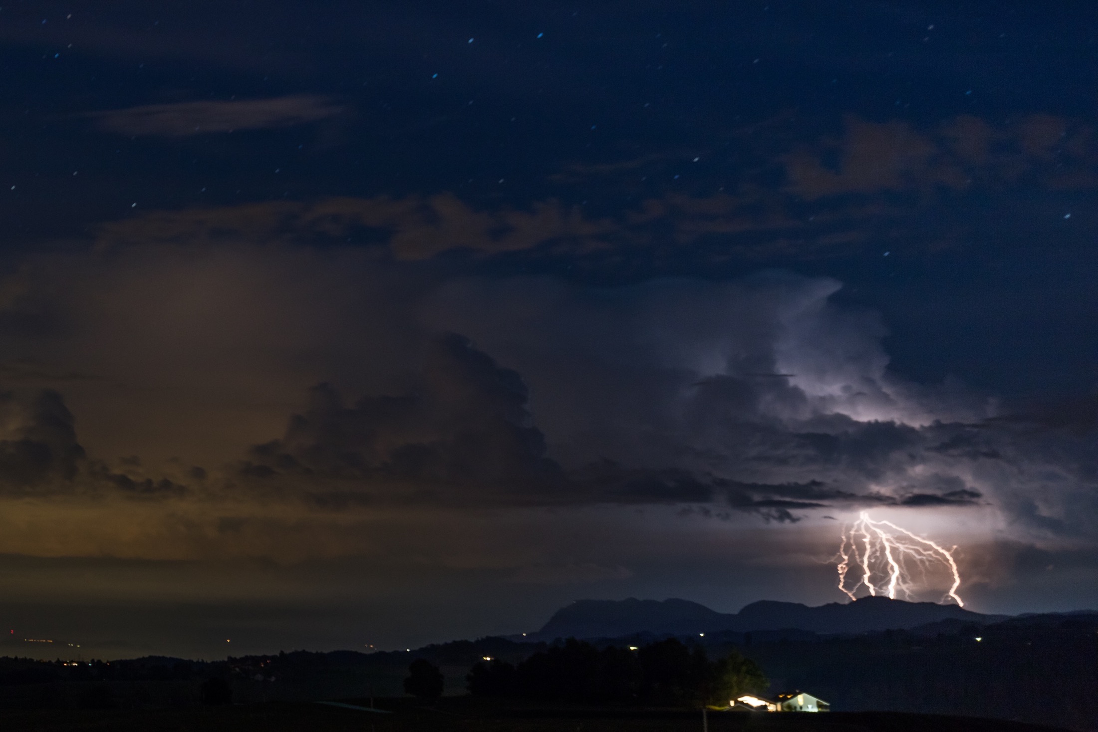 Also bin ich um 2h aufgestanden (geweckt vom Blitz) und wollte eines der seltenen trockenen Augustgewitter ablichten.