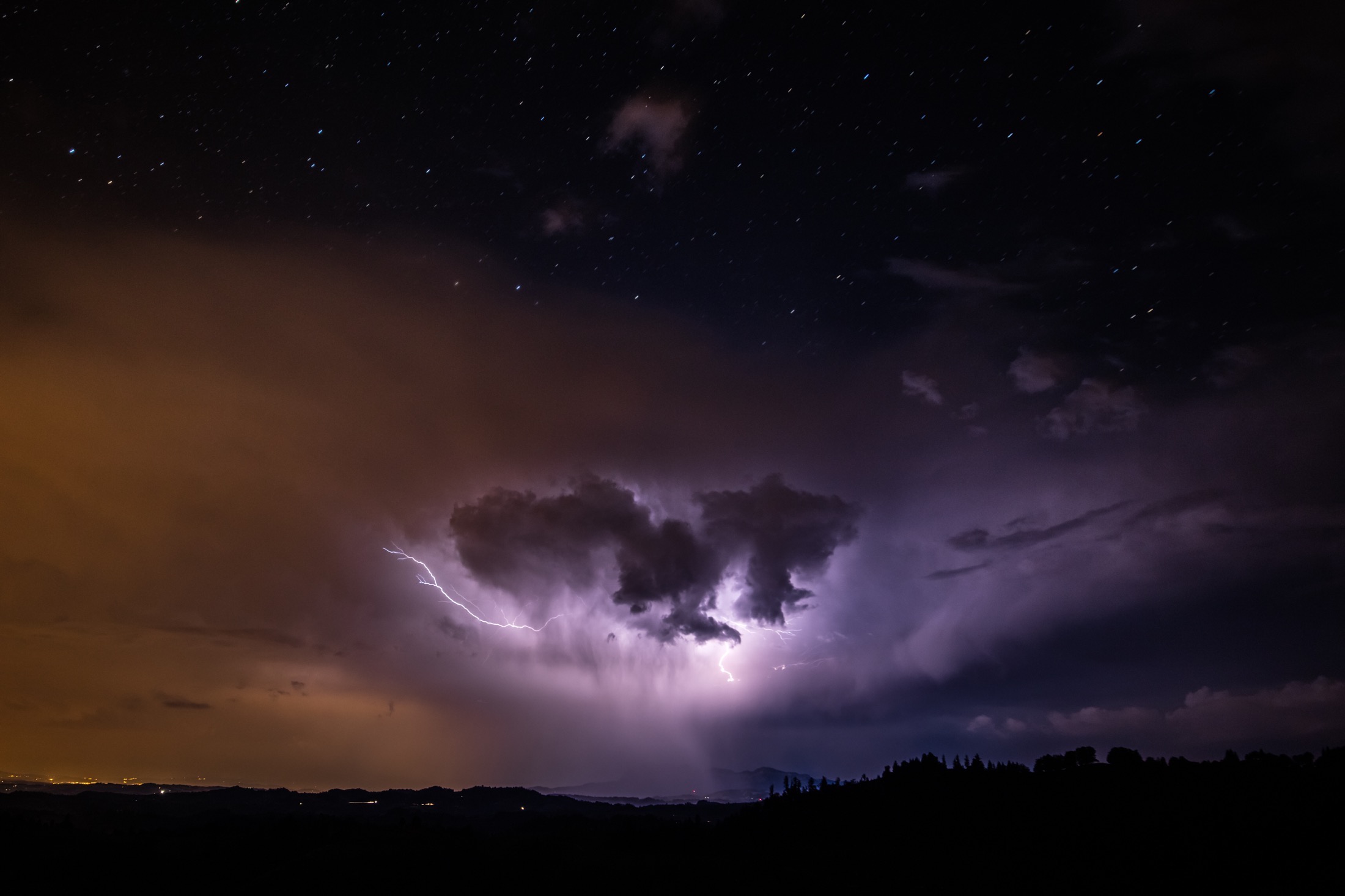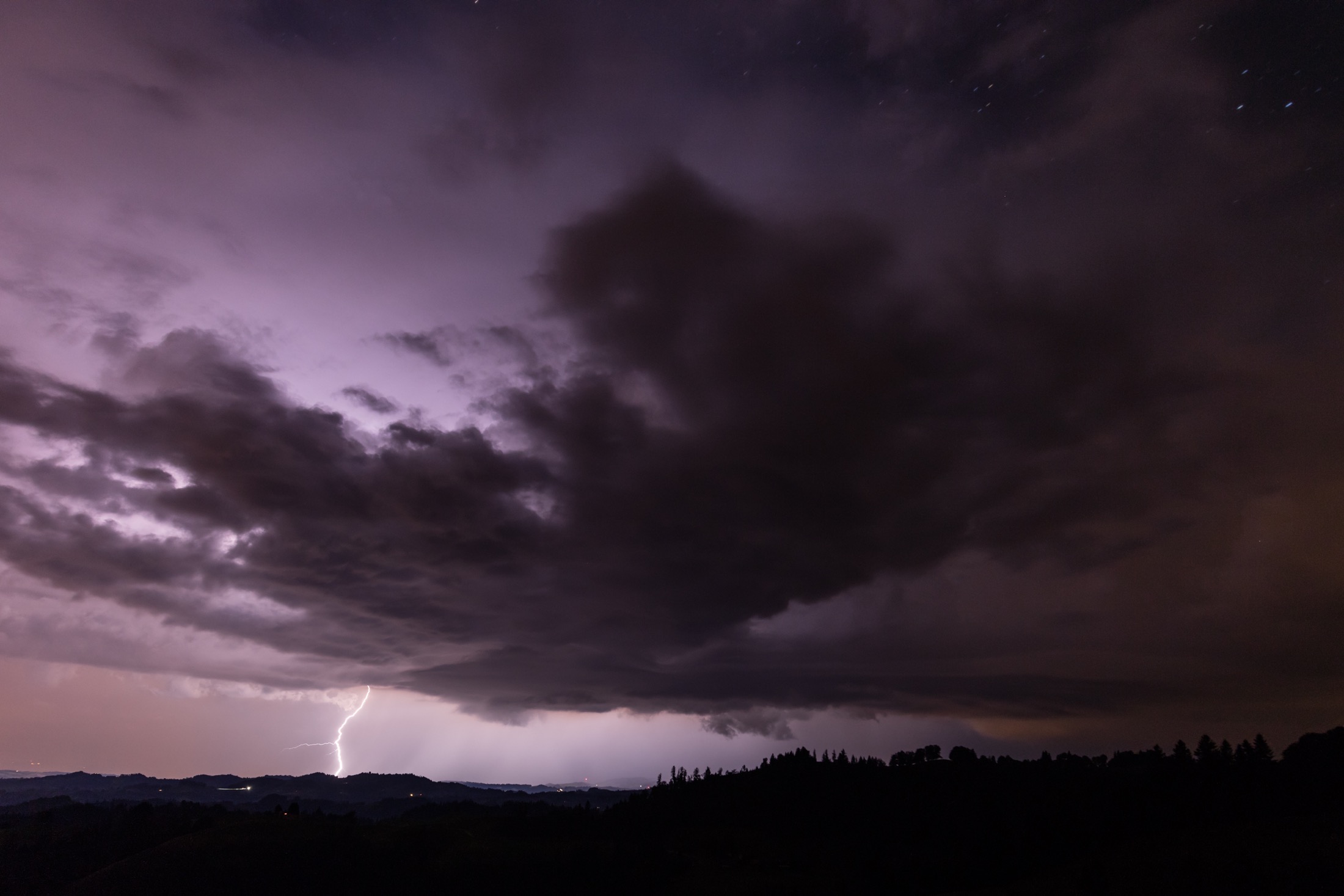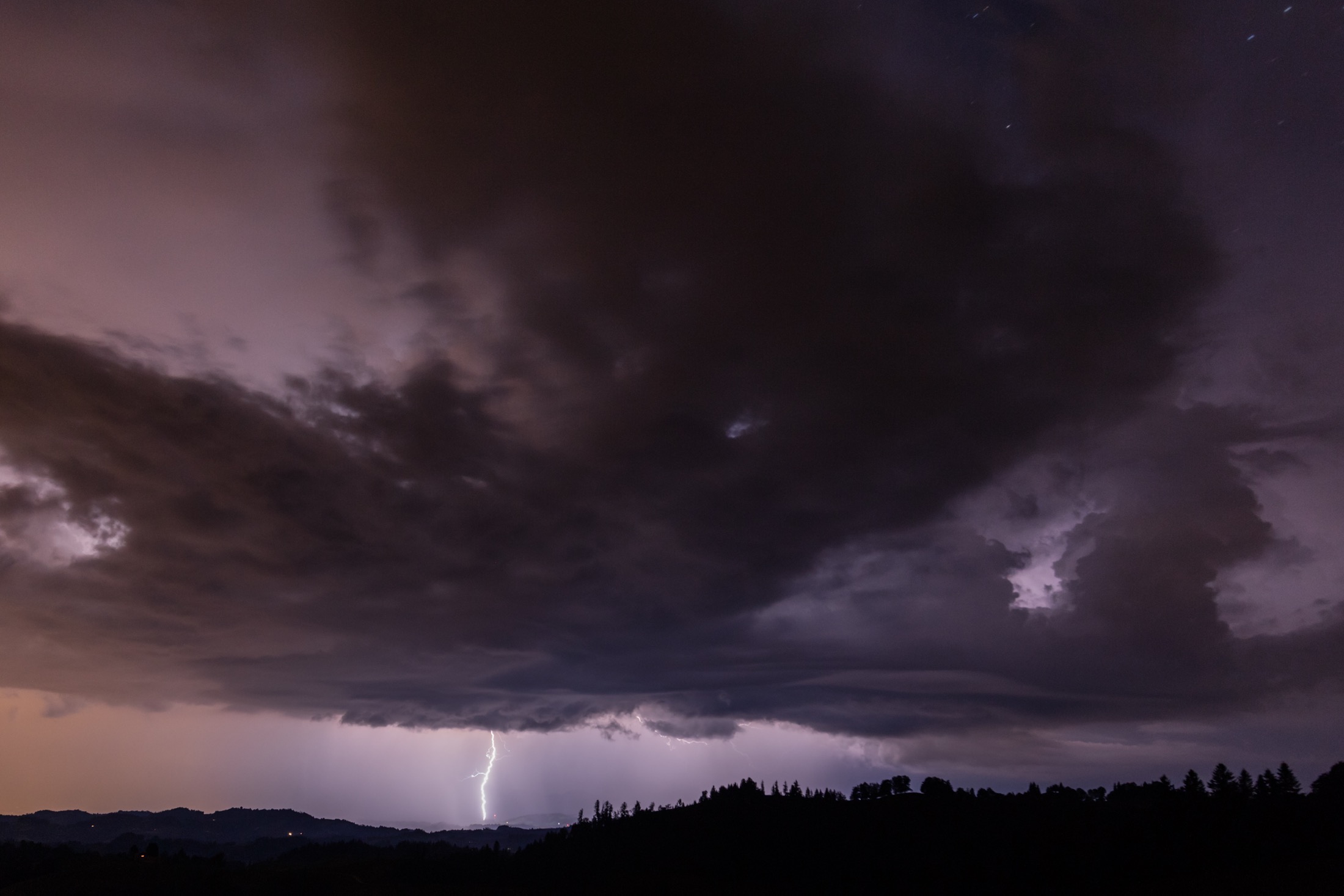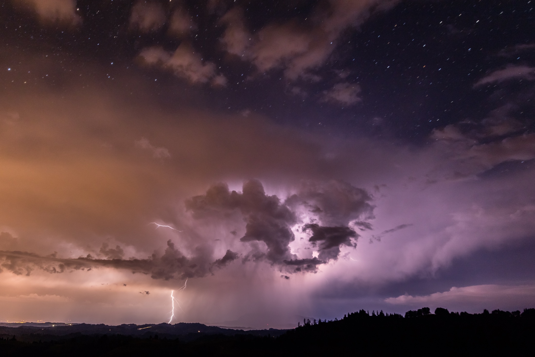 Also bin ich um 2h aufgestanden (geweckt vom Blitz) und wollte eines der seltenen trockenen Augustgewitter ablichten.