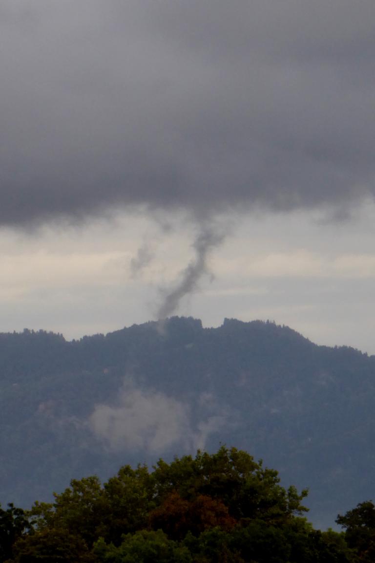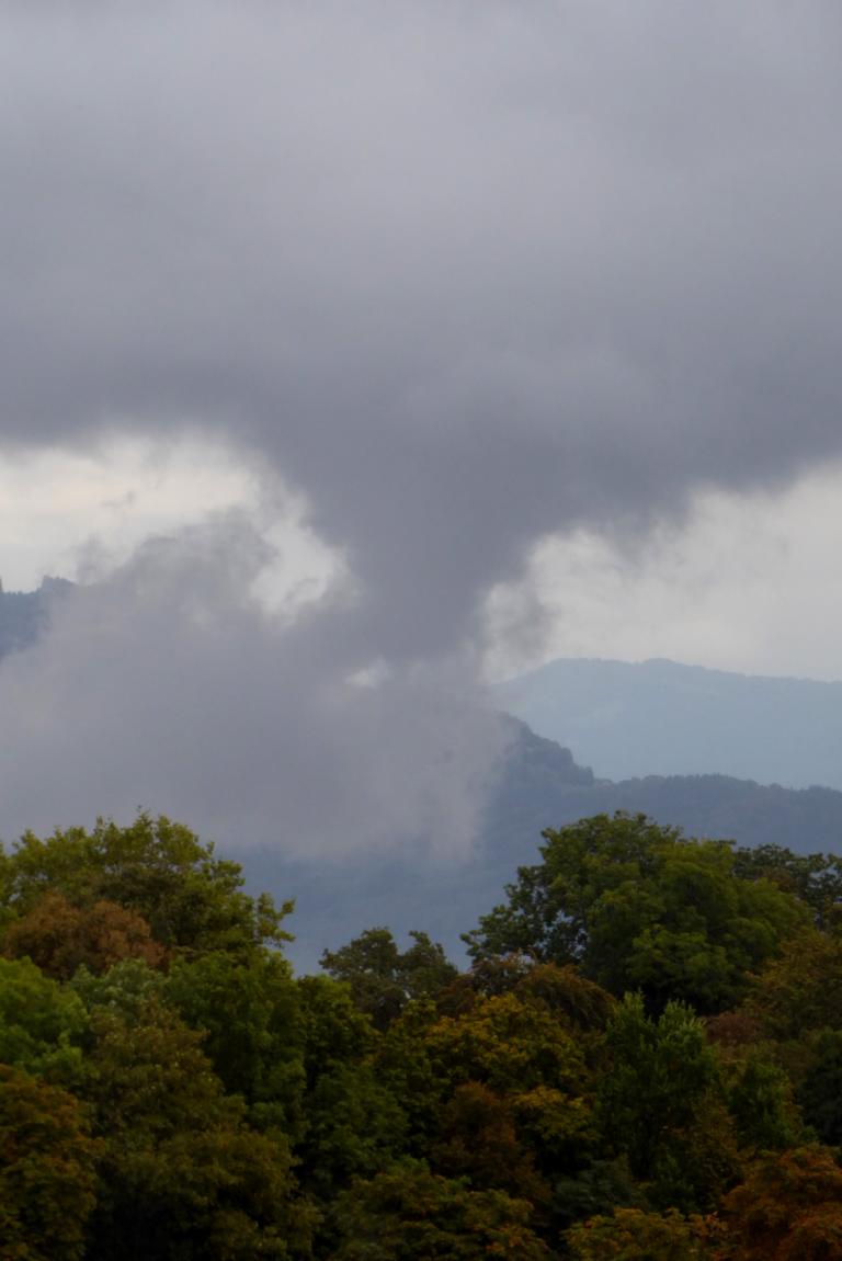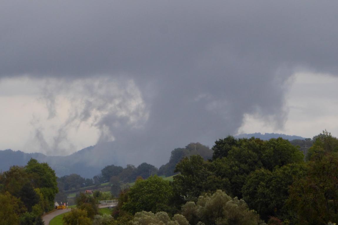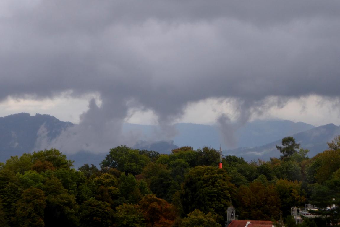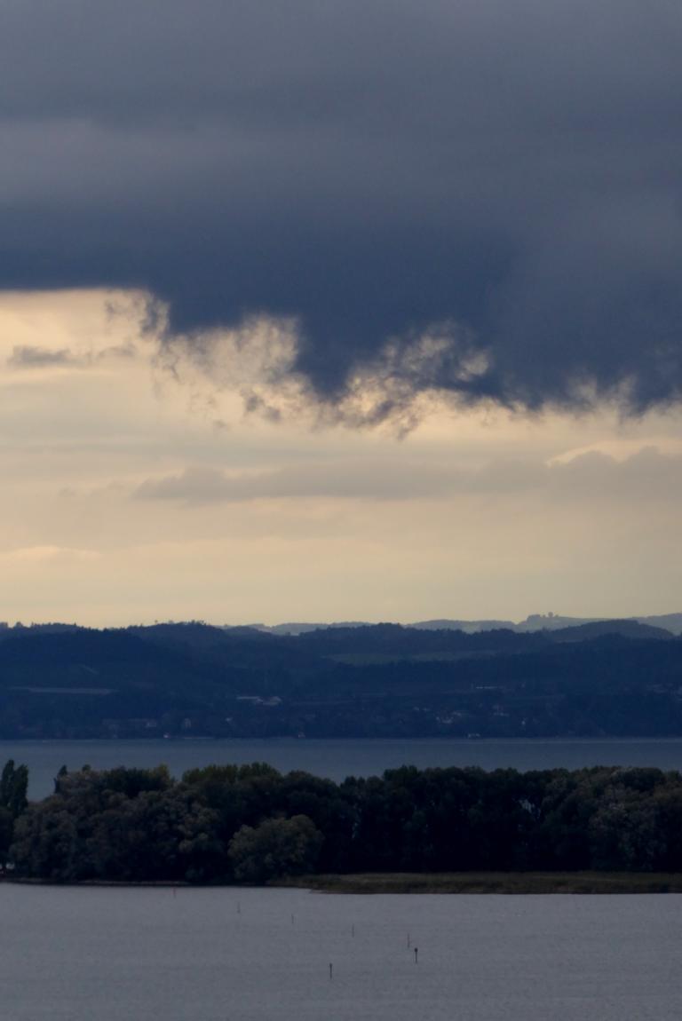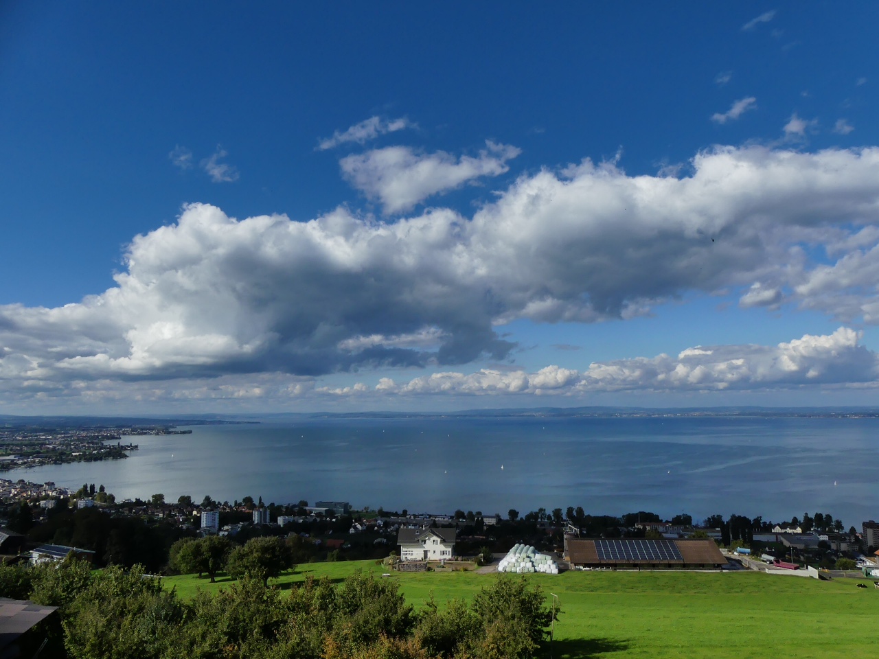 Der warme See hat heute Morgen eine deutliche Quellwolkenstrasse produziert, die mit zunehmender Windstrecke über dem See immer breiter und höher wurde (im Bild von links nach rechts, Standort Rorschacherberg). Für Wasserhosen hat es jedoch nicht gereicht, da die Luftschichtung einfach zu stabil war.