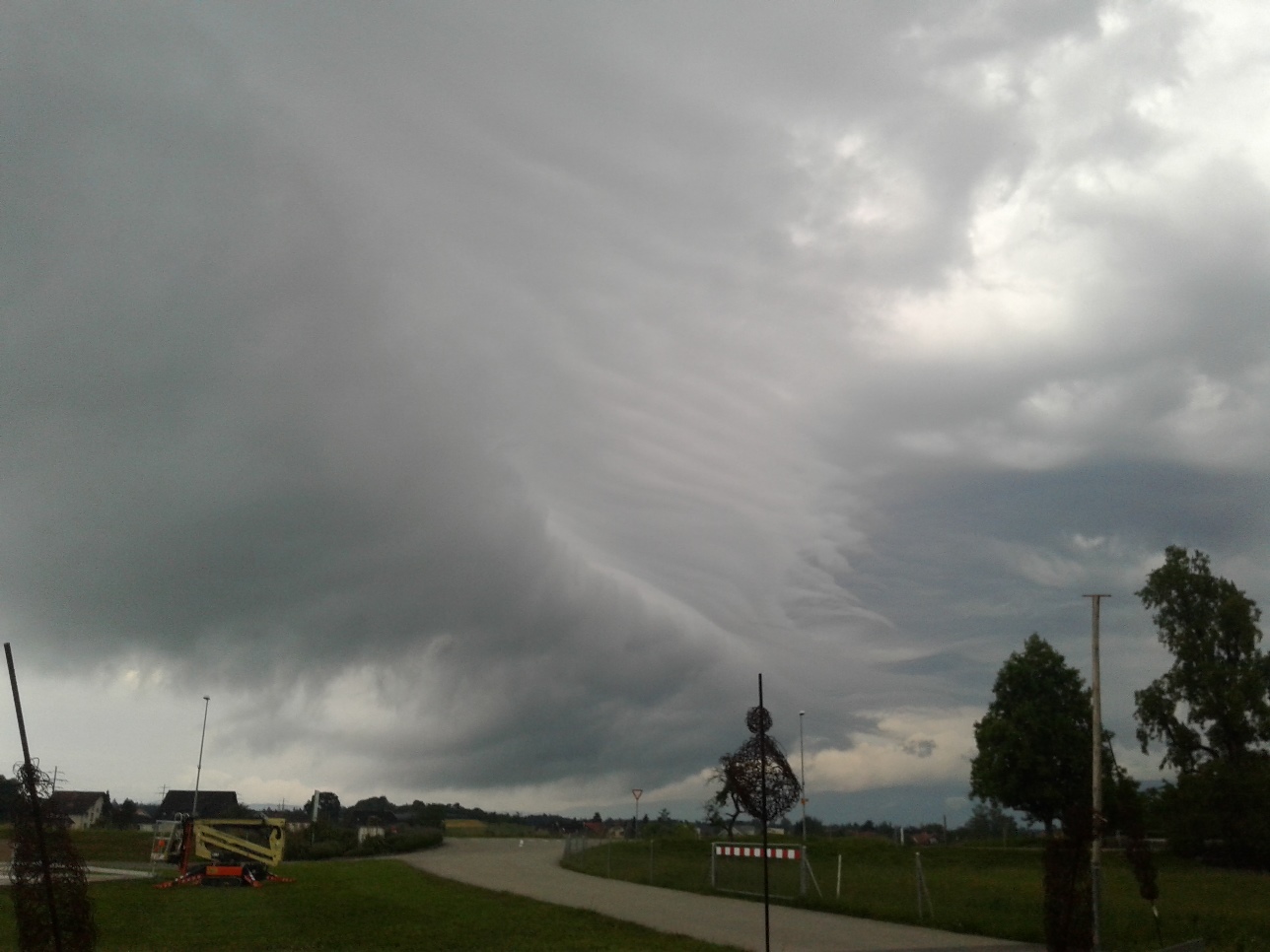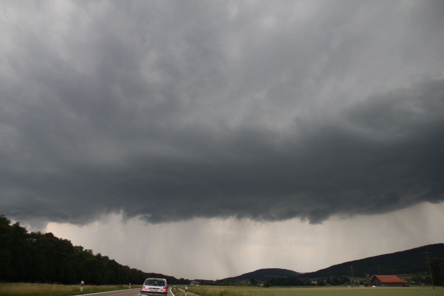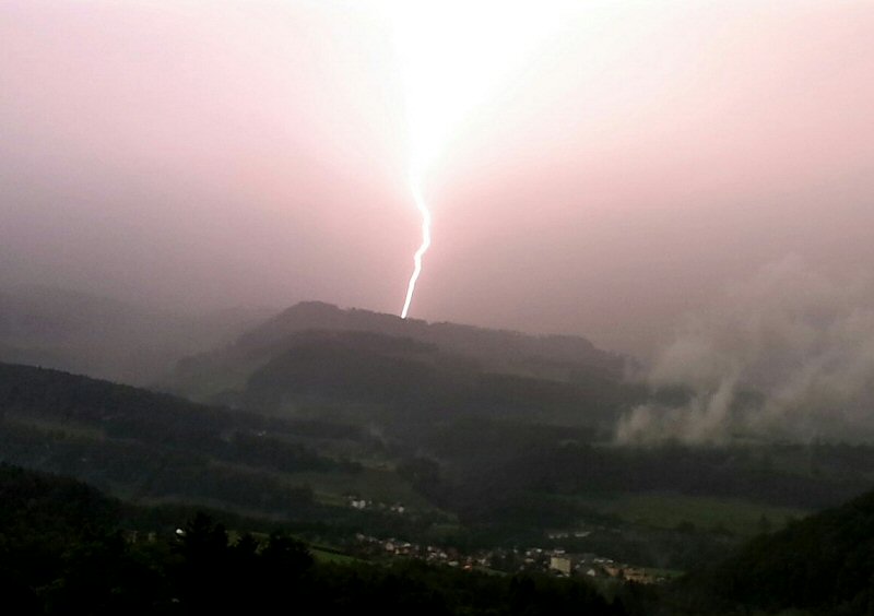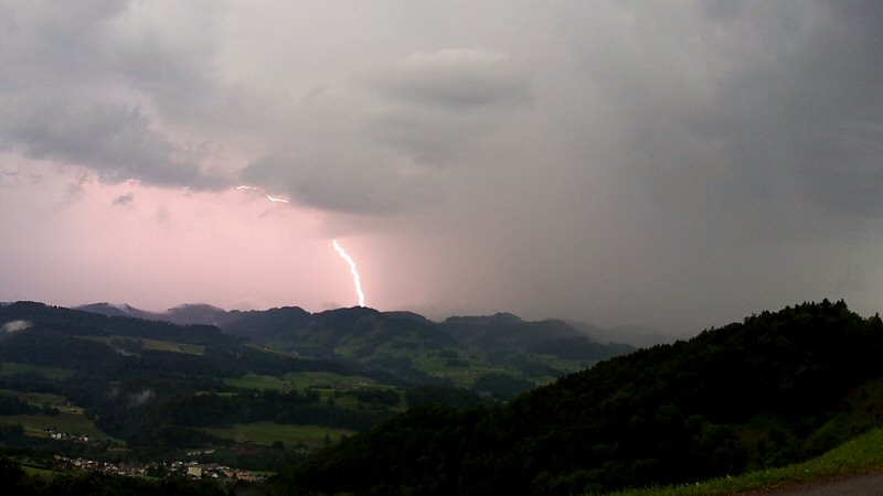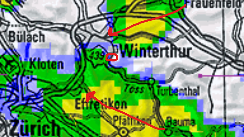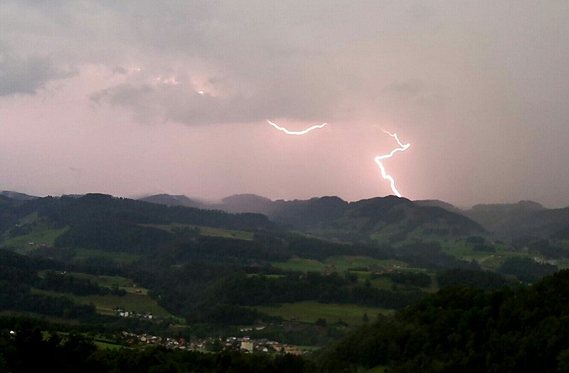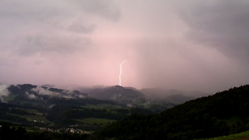 Schon etwas nach 14 Uhr konnte man in Küssnacht am Rigi die ersten knackigen Donner hören. Infolge dieses Wetter konnte ich etwas früher Feierabend machen. Ich schaute auf den Niederschlagsradar und sah diese Zelle die sich über den Mythen gebildet hatte und heftige Regenfälle ins Alptal niederprasseln lies. Dabei bildete sich Talabwärts so etwas wie eine weitere Zelle. Das könnte eine Sturzflut in der Alp geben. Das wollte ich genauer wissen und fuhr um 15:45 Uhr los.