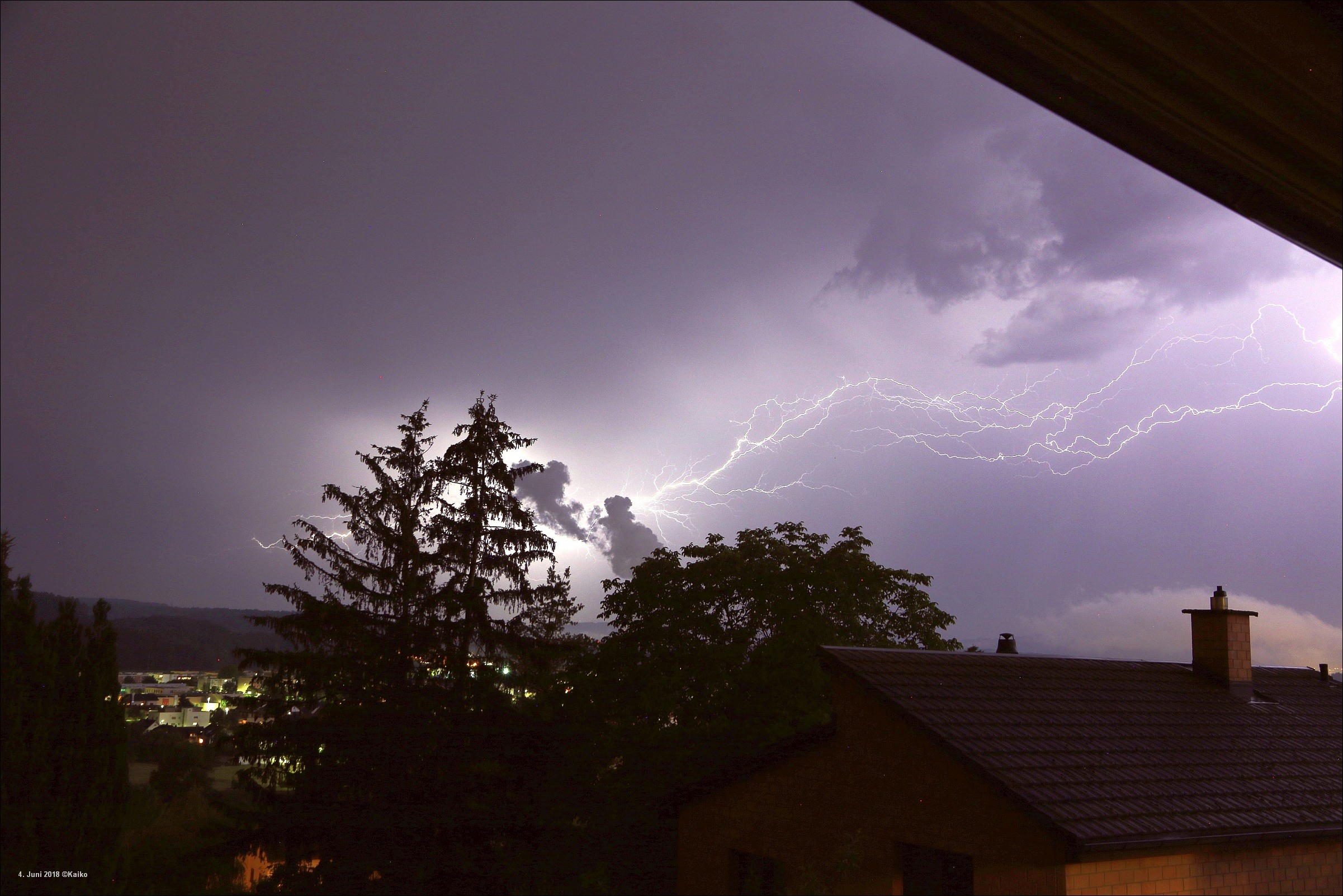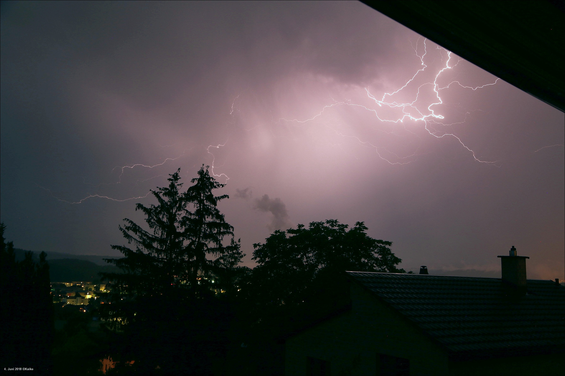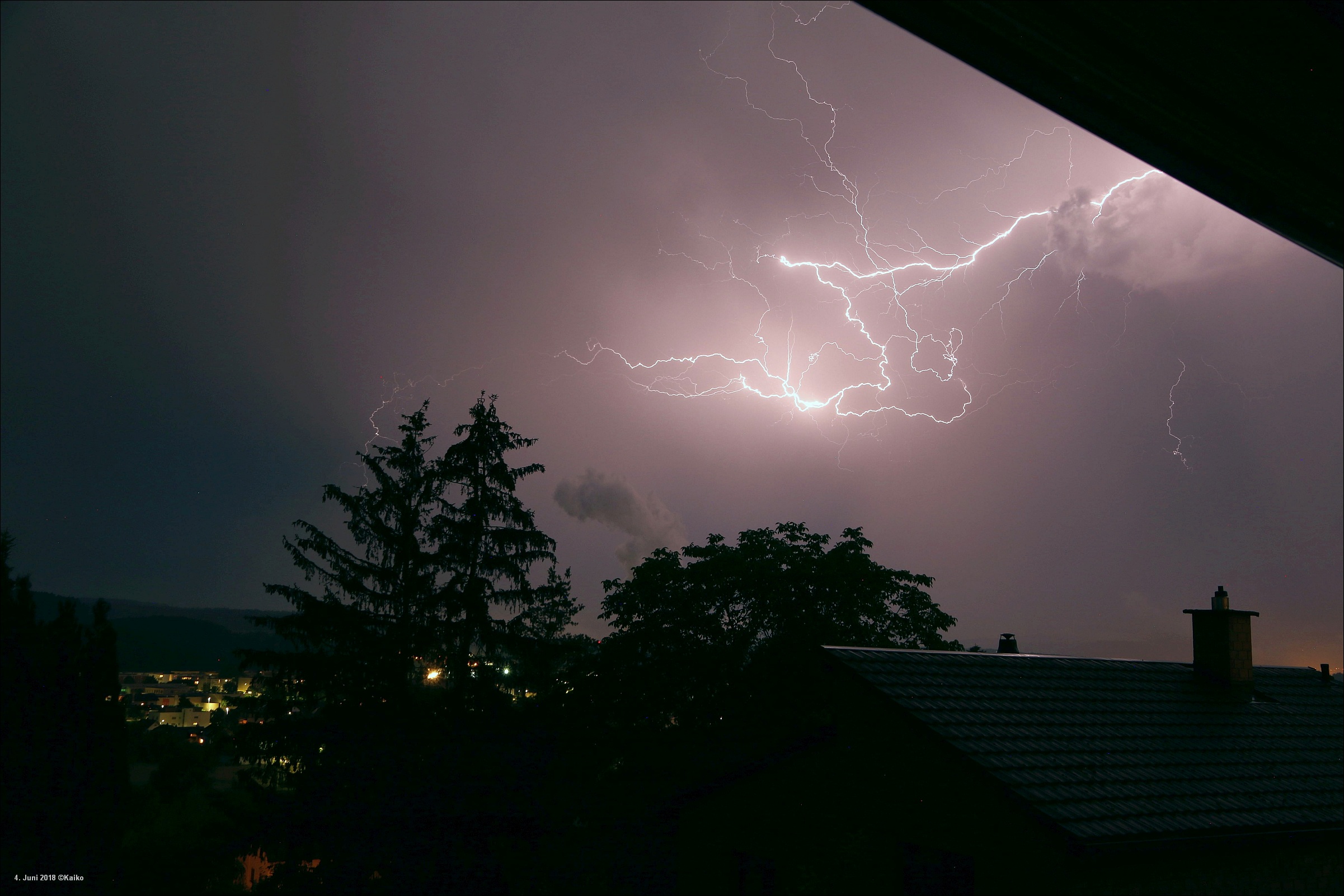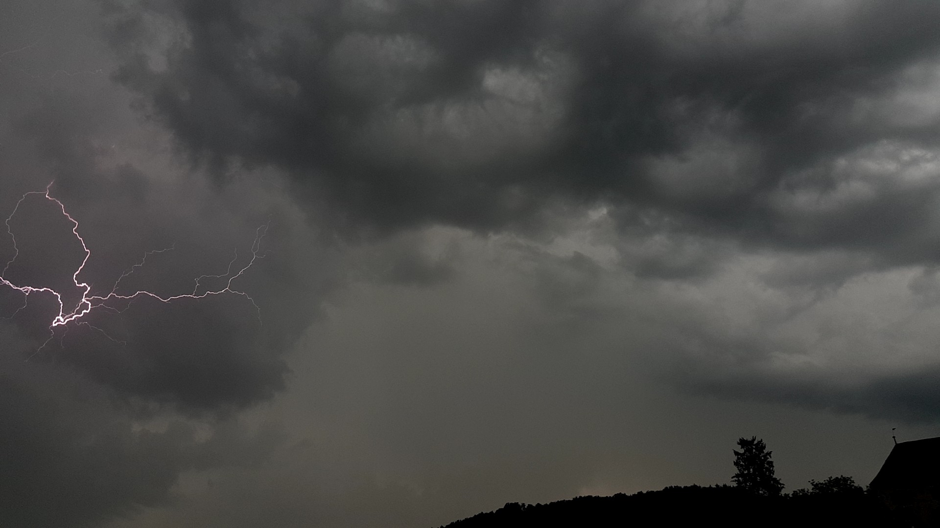 Hoi Chris, wow geniales BildBlick von Speckhof (oberhalb von Kaltenbach TG) Richtung Wolkenstein und Hegau (im Regen). Direkt hinter dem Blitz liegt Hemishofen.