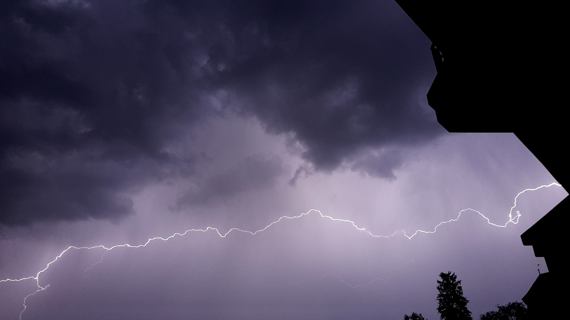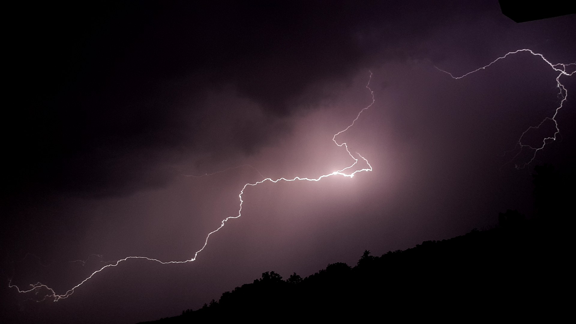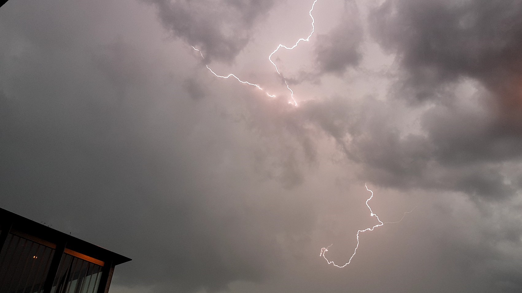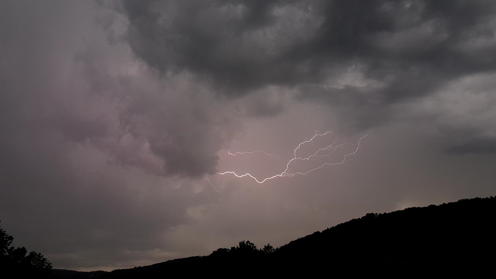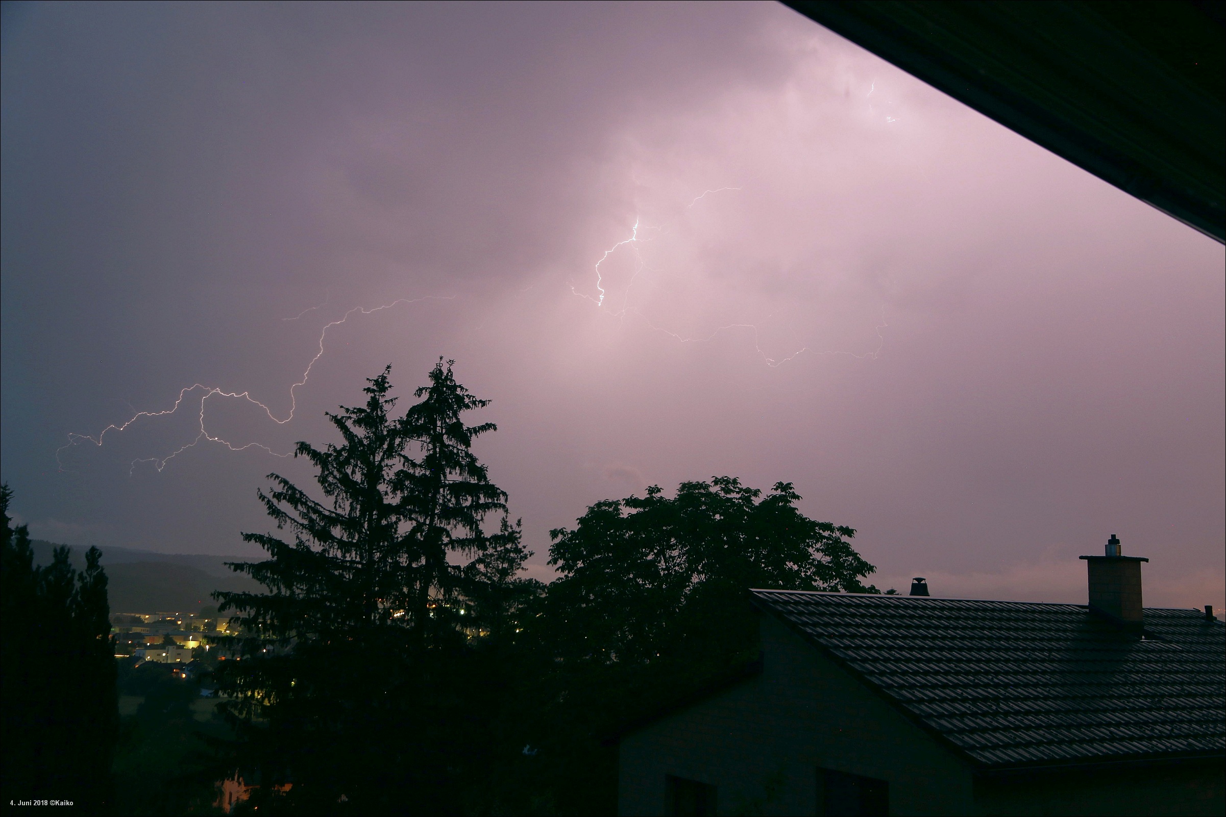 Hoi Chris, wow geniales BildBlick von Speckhof (oberhalb von Kaltenbach TG) Richtung Wolkenstein und Hegau (im Regen). Direkt hinter dem Blitz liegt Hemishofen.