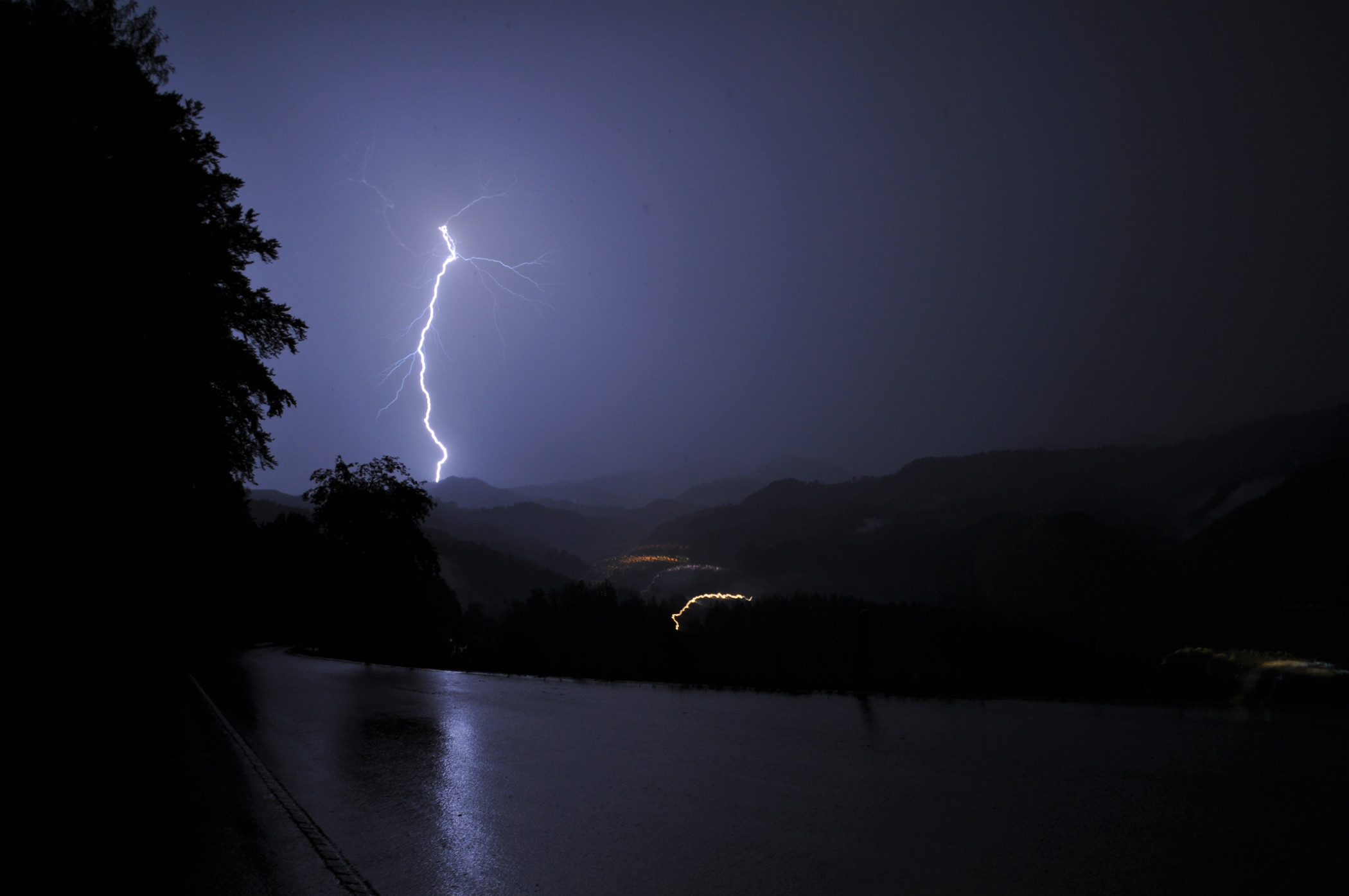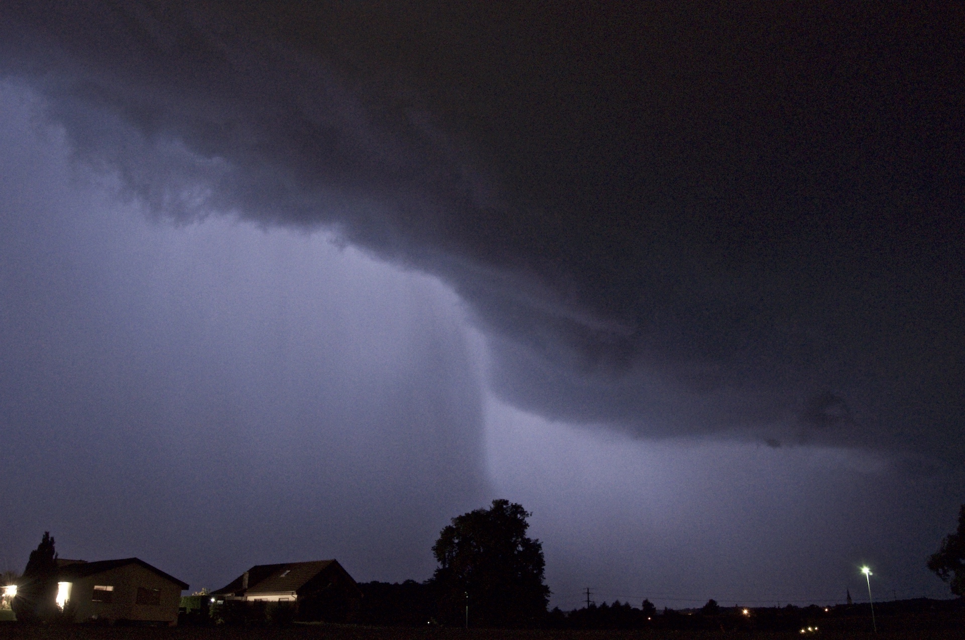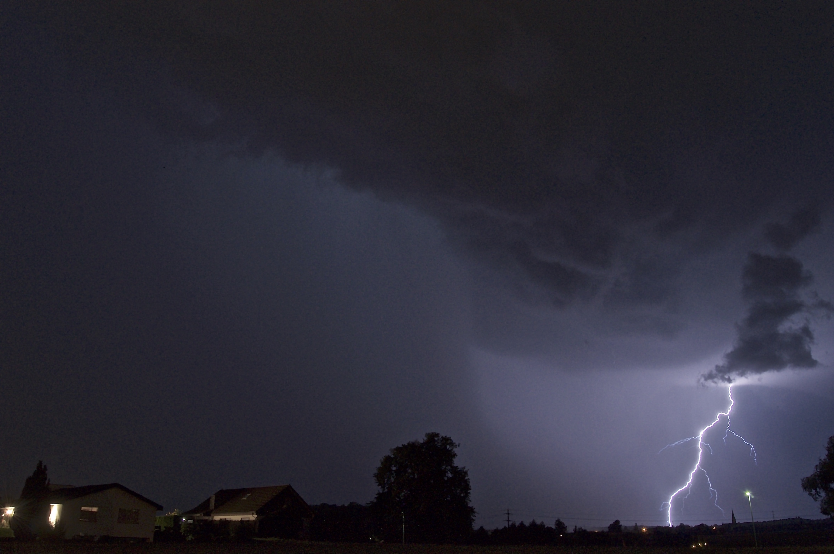 Es war eine dankbare Gewitternacht, auch wenn der Blick auf die Hagelwerfer im Norden verwehrt blieb. Mehrere mässig aktive Zellen zogen im Westen und im Süden vorbei. Schön auch, dass es lange trocken blieb. Es gab viel Wetterleuchten und Gerummel in der Ferne, wenige sichtbare Blitze und für einmal keine Bodeneinschläge. Der Regen und etwas Wind kamen dann nach Mitternacht auf leisen Sohlen.