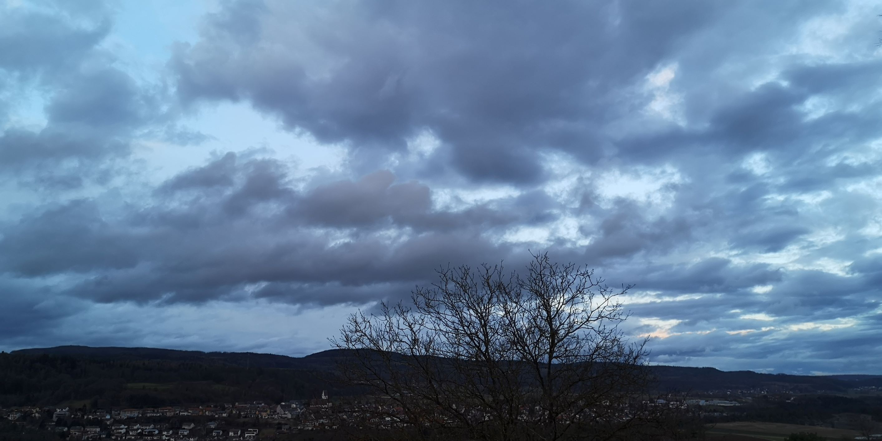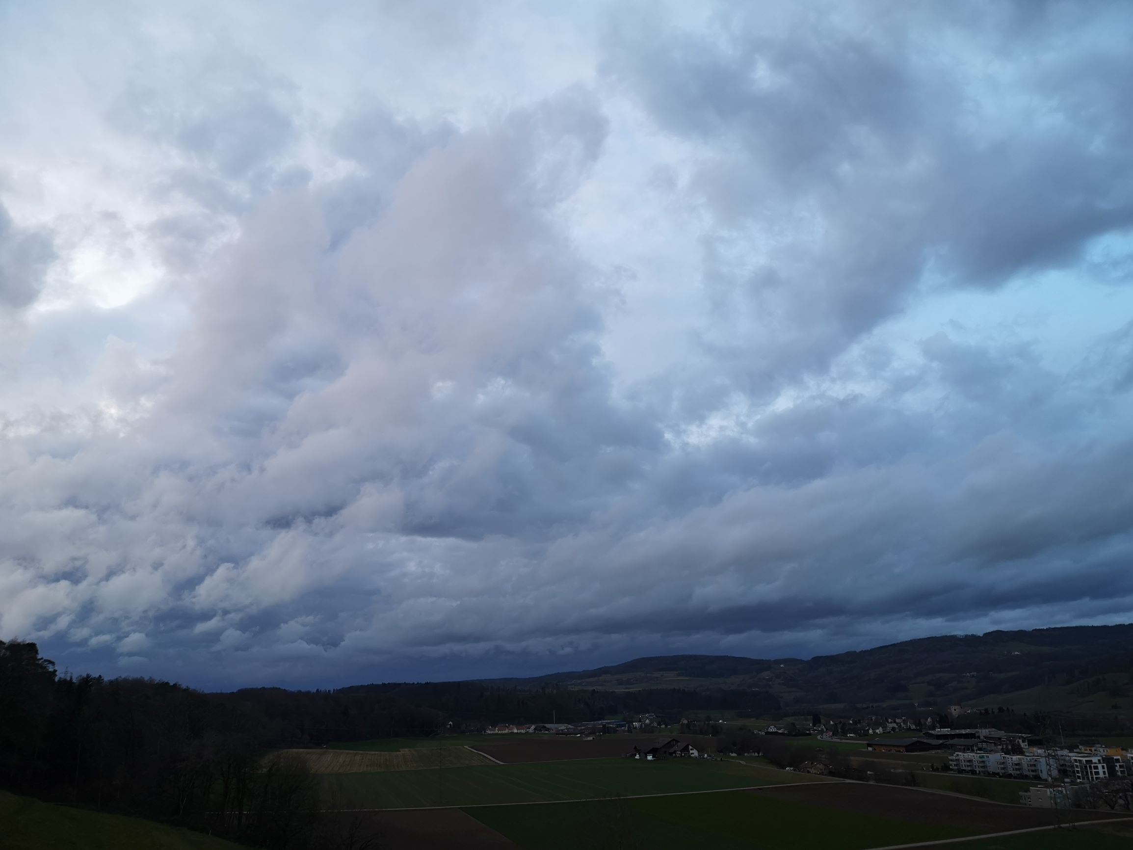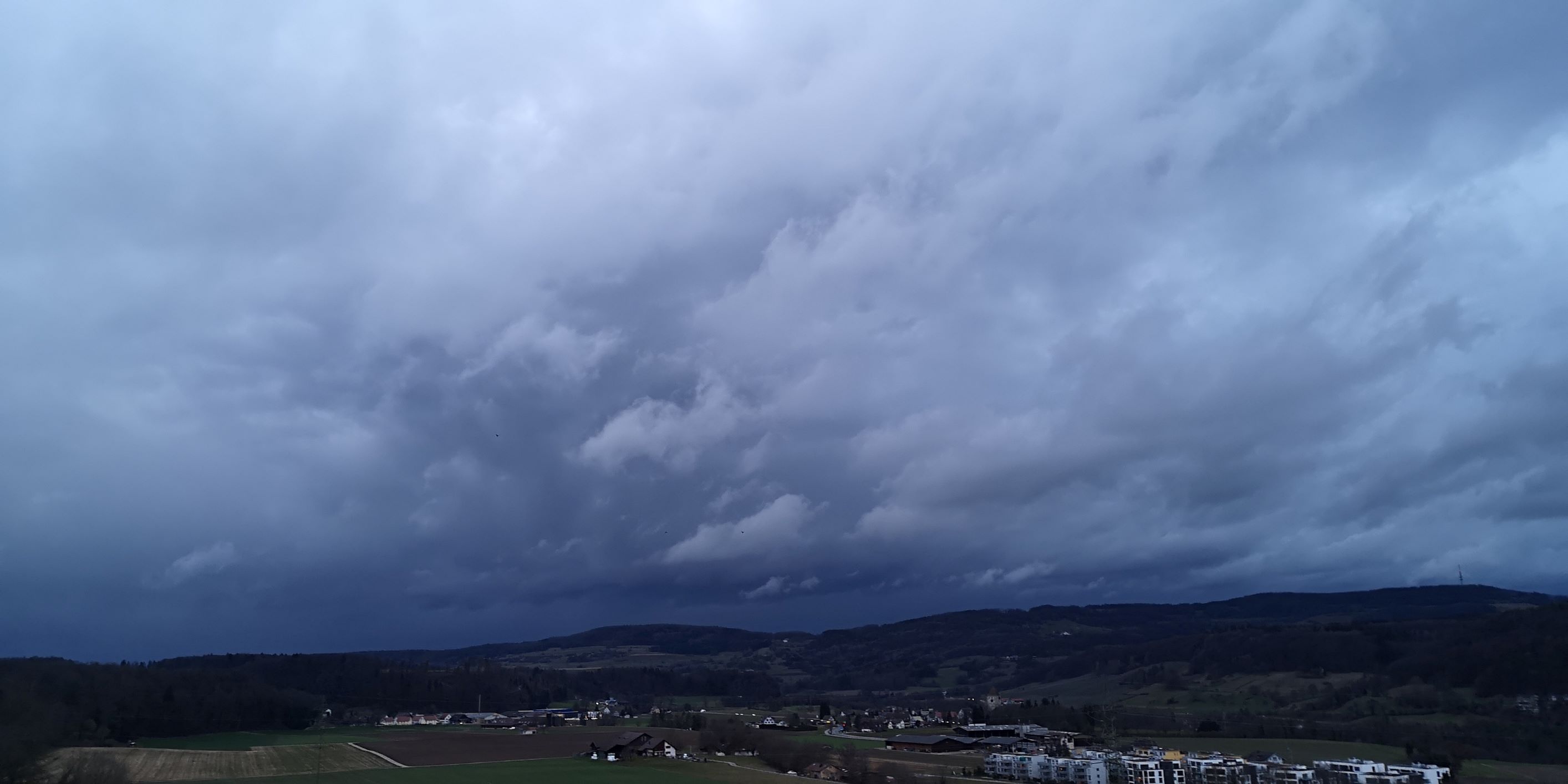 Um möglichst weit sehen zu können, filmte und fotografierte ich vom Waldrand oberhalb Weiach, Richtung Kaiserstuhl und Hohentengen/Deutschland.