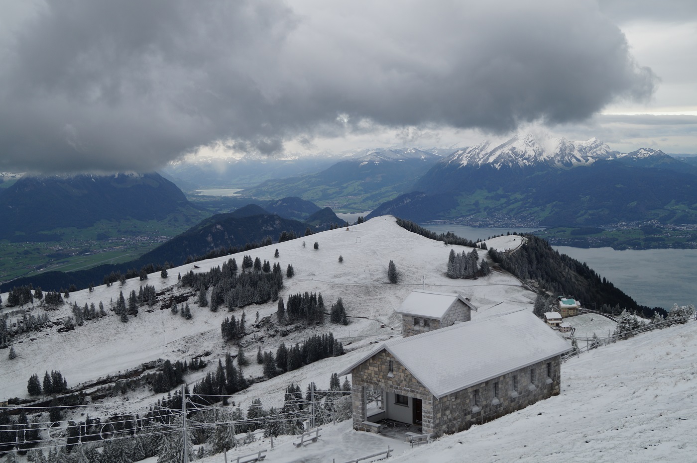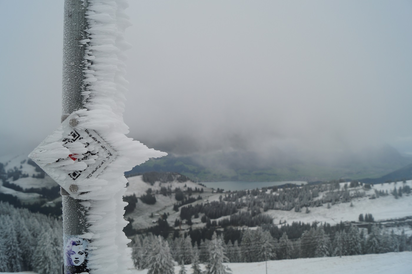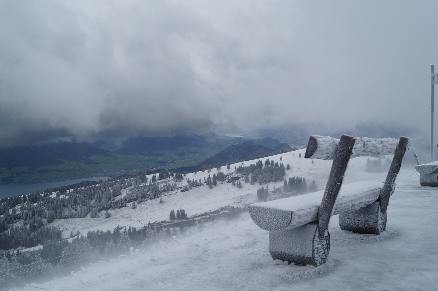 Hier auf dem Gäbris schliesslich gab es heute immer wieder Schneeregen bei 1 bis 2 Grad. Es blieb grün.