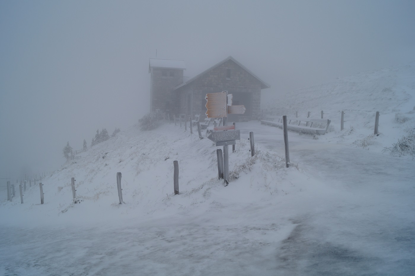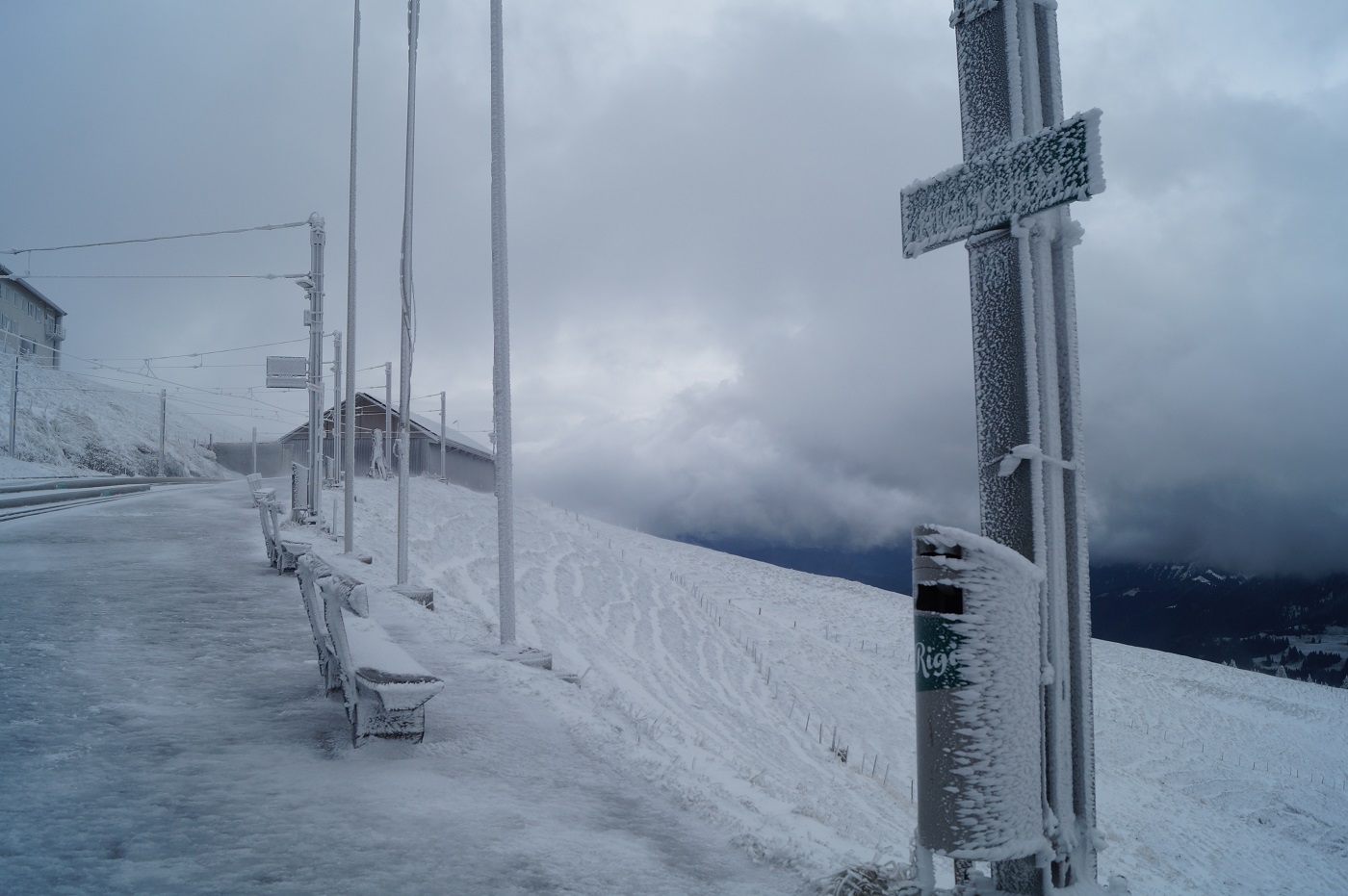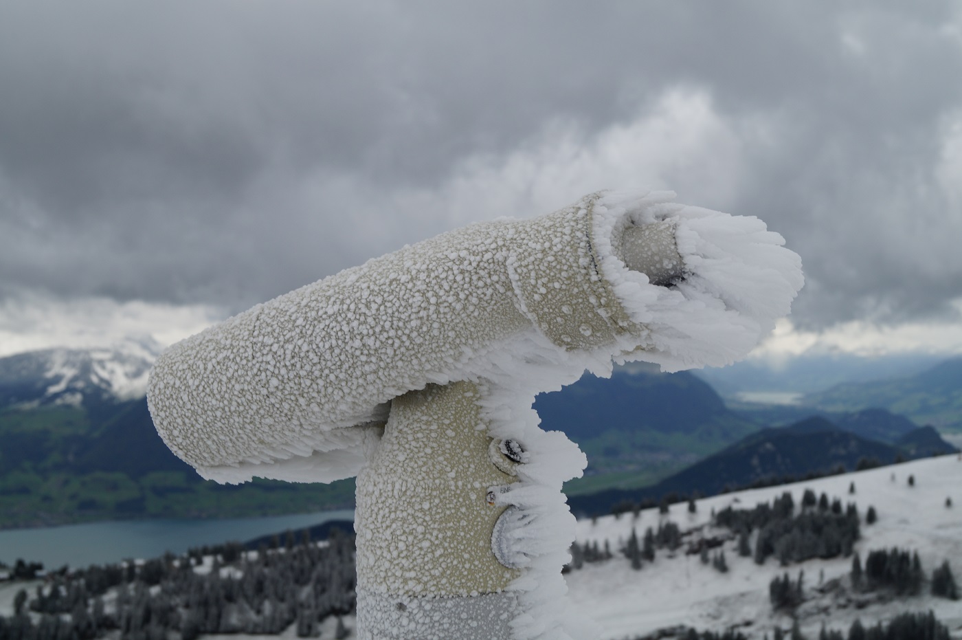 Hier auf dem Gäbris schliesslich gab es heute immer wieder Schneeregen bei 1 bis 2 Grad. Es blieb grün.