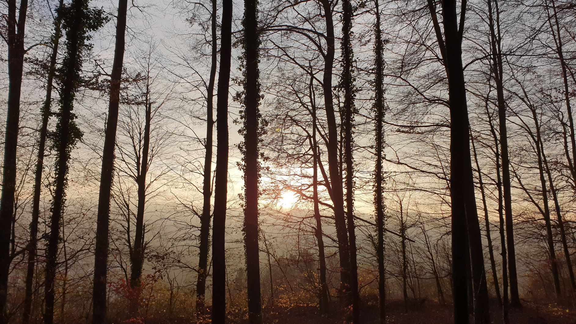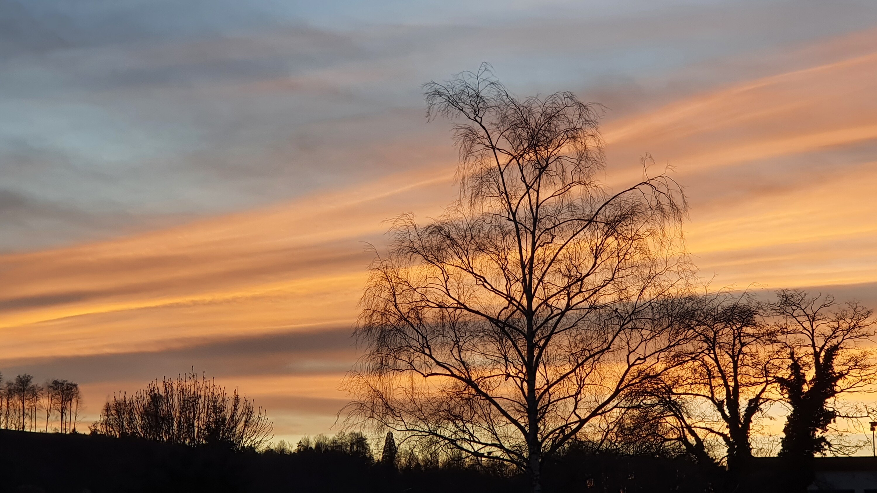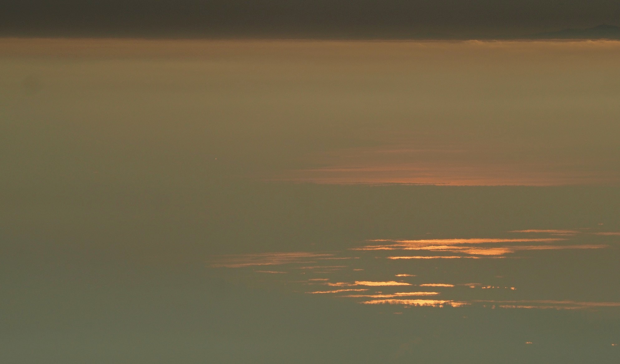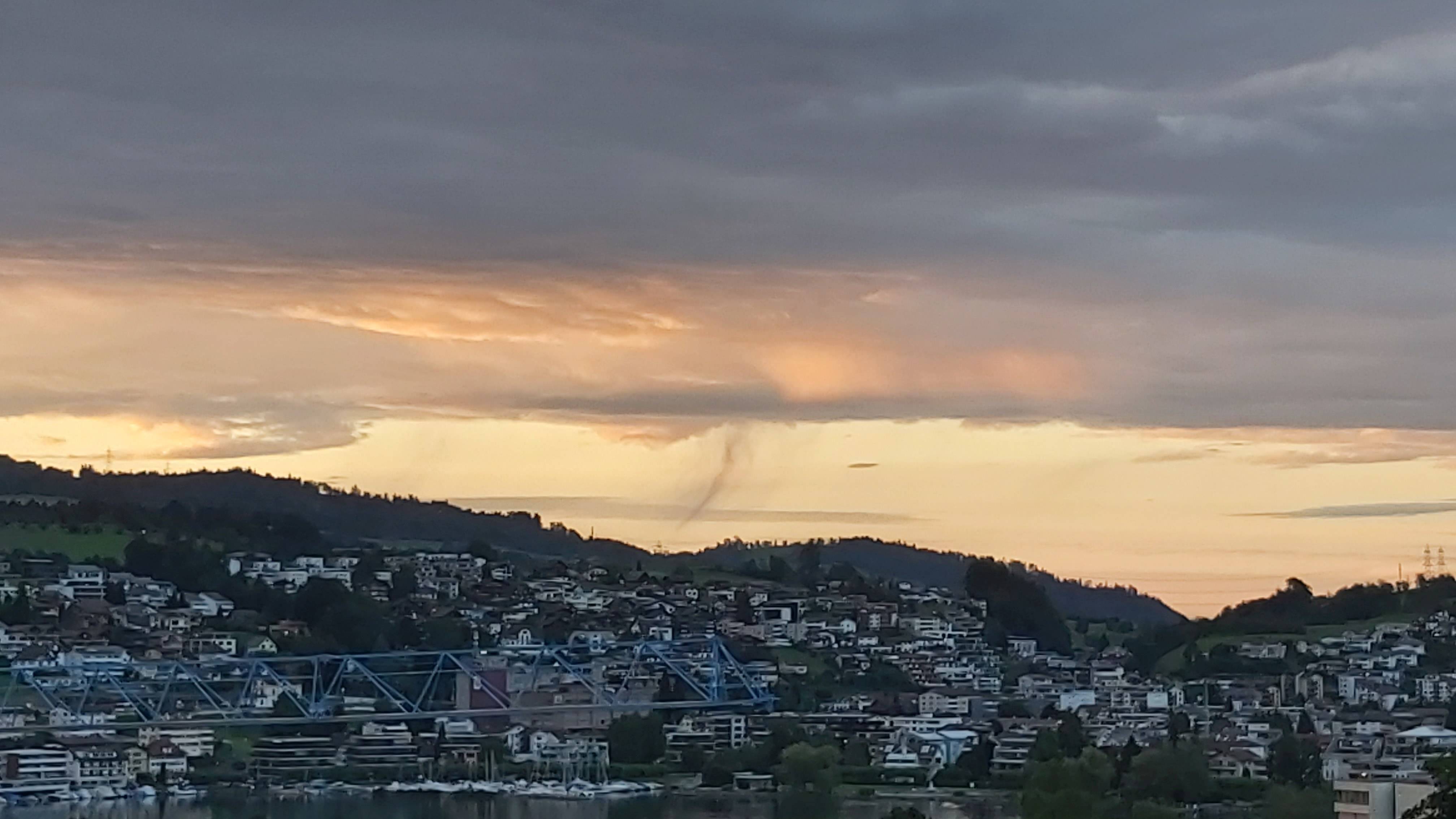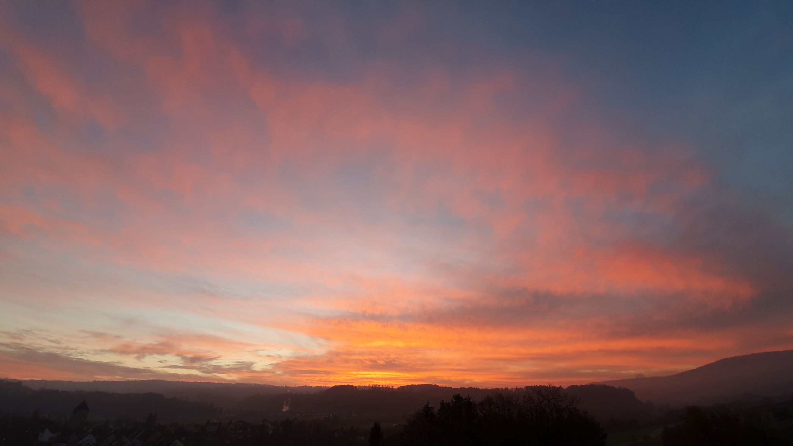 Der Sonnenuntergang mit Regenschauer davor, der aber wahrscheinlich nicht bis an den Boden reicht.